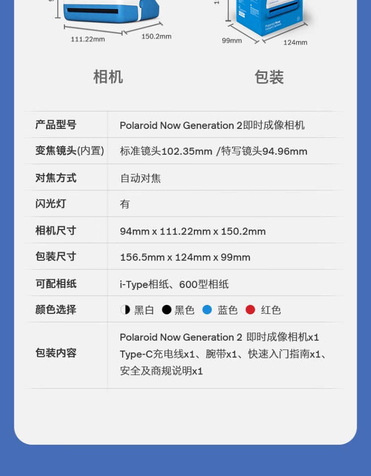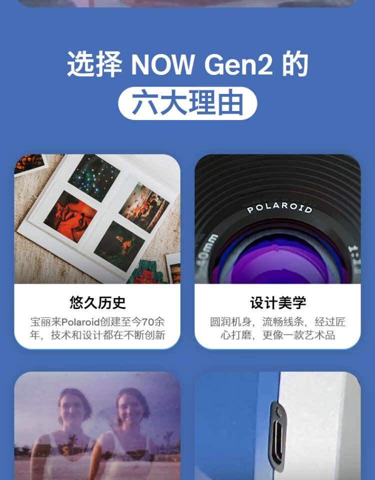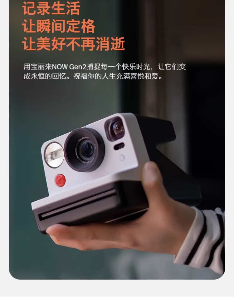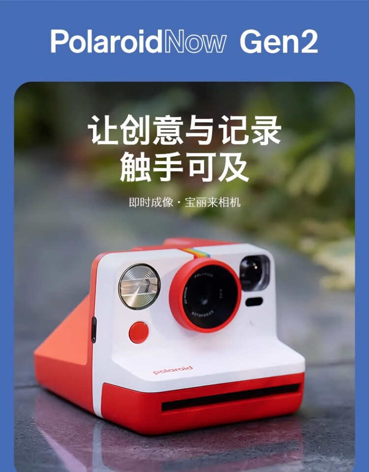 宝丽来(Polaroid)Now 2拍立得相机内置闪光灯 USB-C 充电 Now 第二代 红白色 拍立得【官方标配 无相纸】
