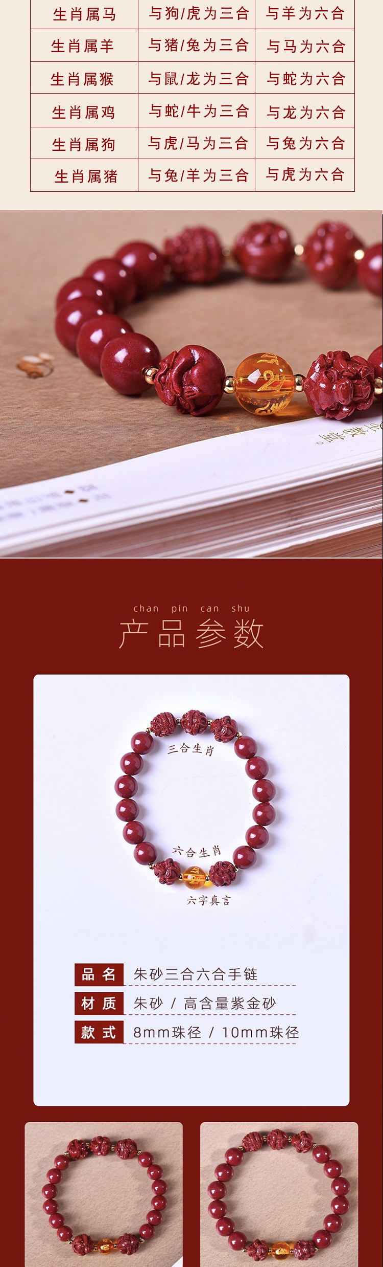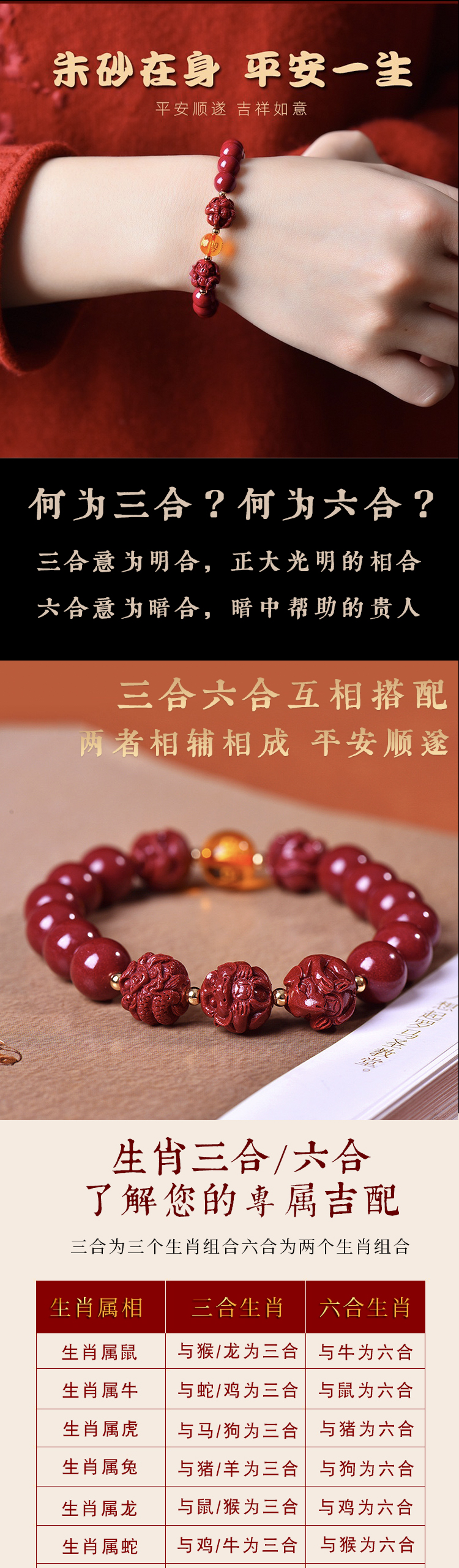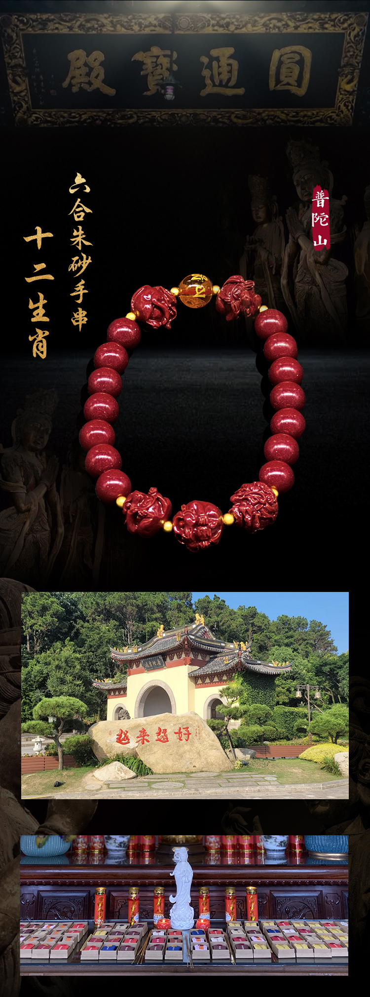 普陀山正品 十二生肖朱砂 三合六合手串 本命年手串