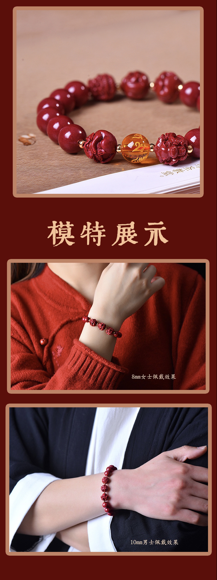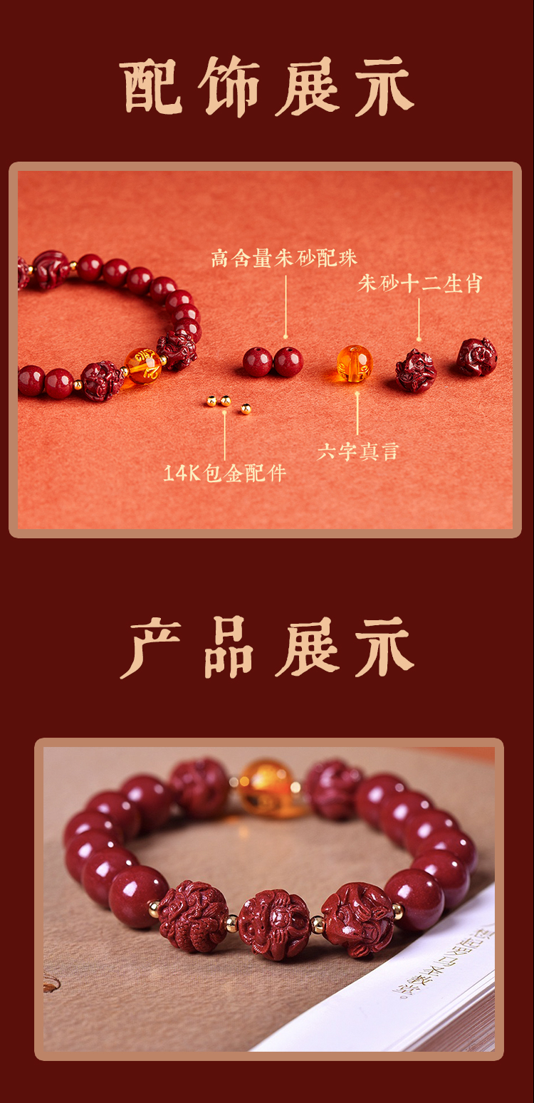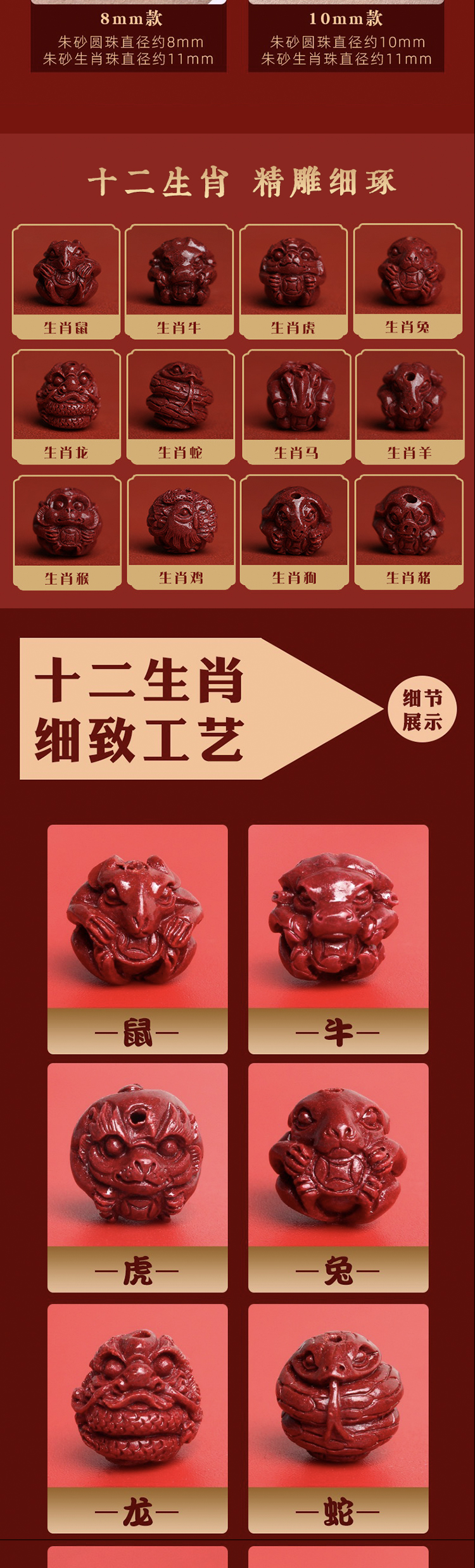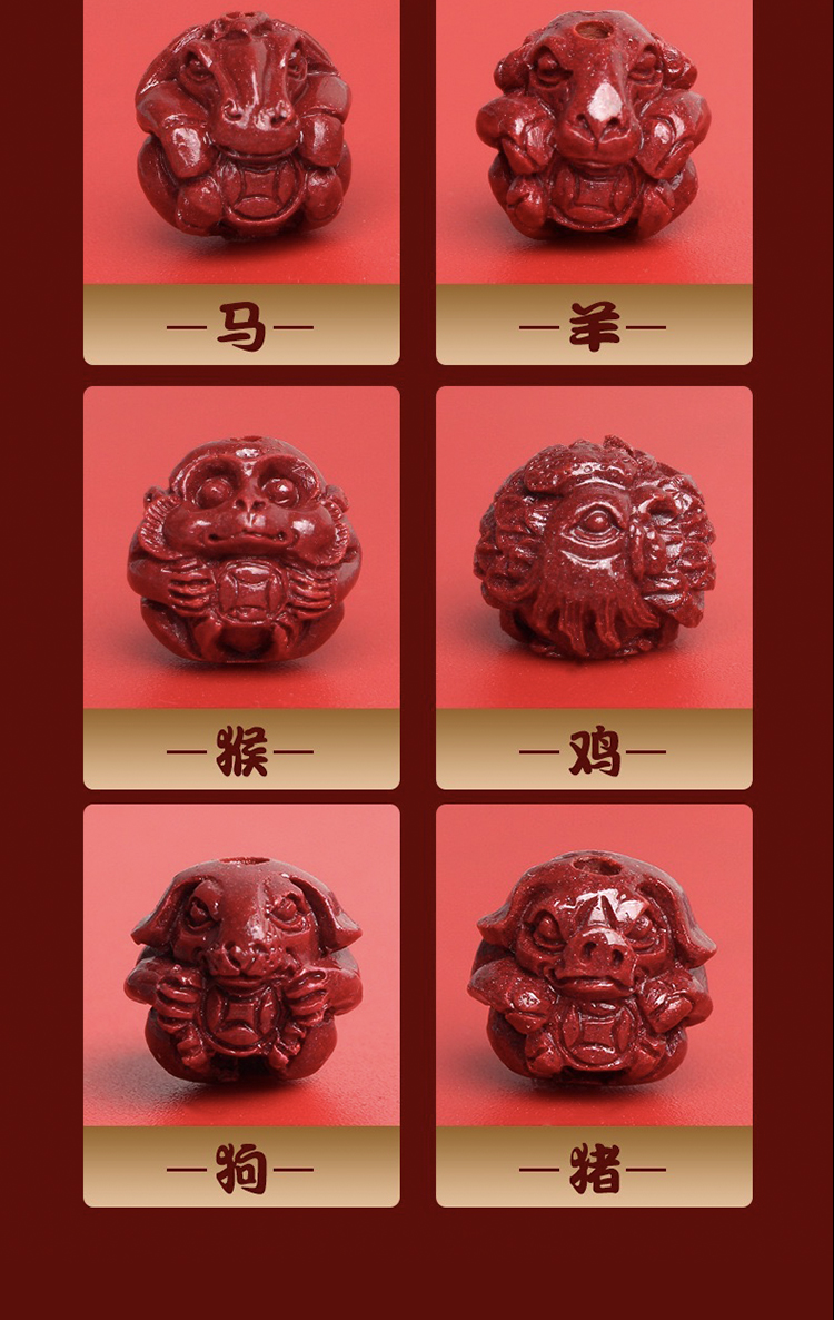 普陀山正品 十二生肖朱砂 三合六合手串 本命年手串