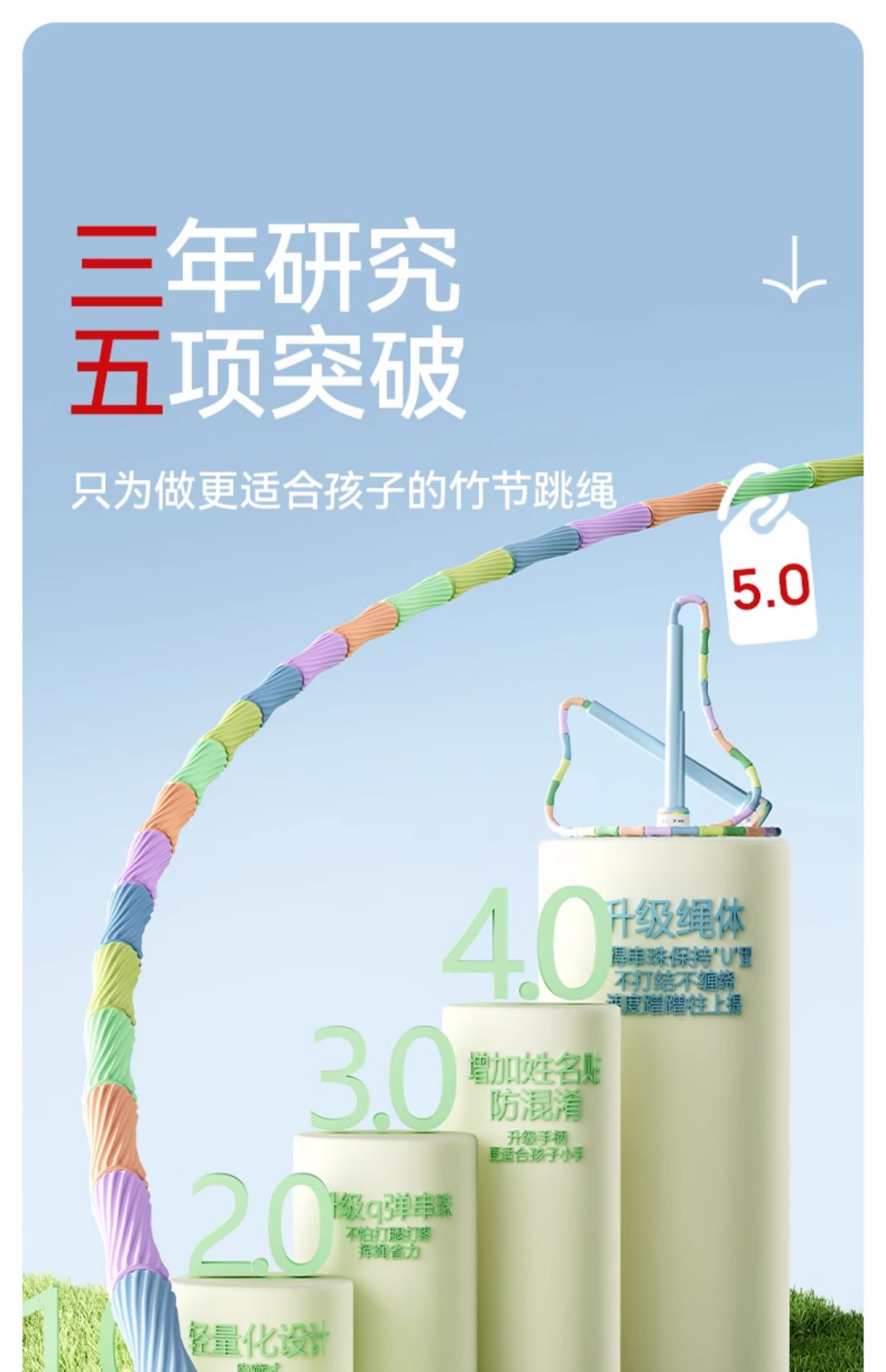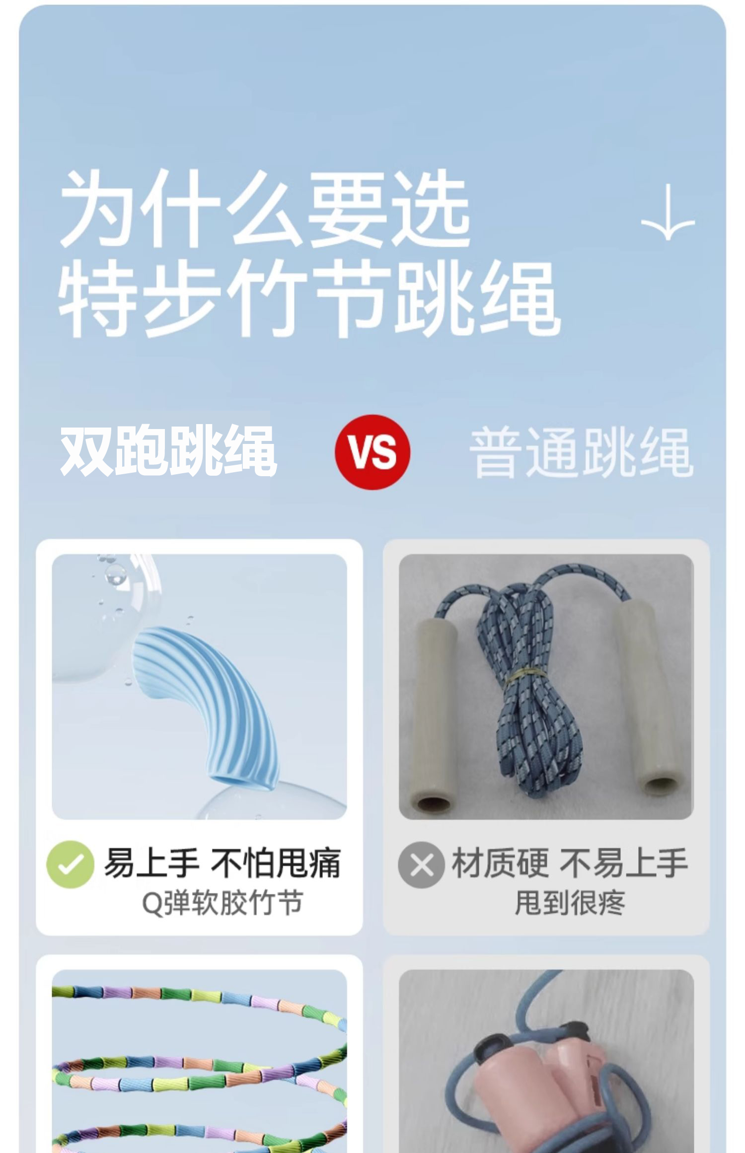 开学季福利!升级款!【可签名软竹节 可调节】双跑儿童竹节跳绳专业中小学生专用可调节幼儿园初学中考体育健身绳子