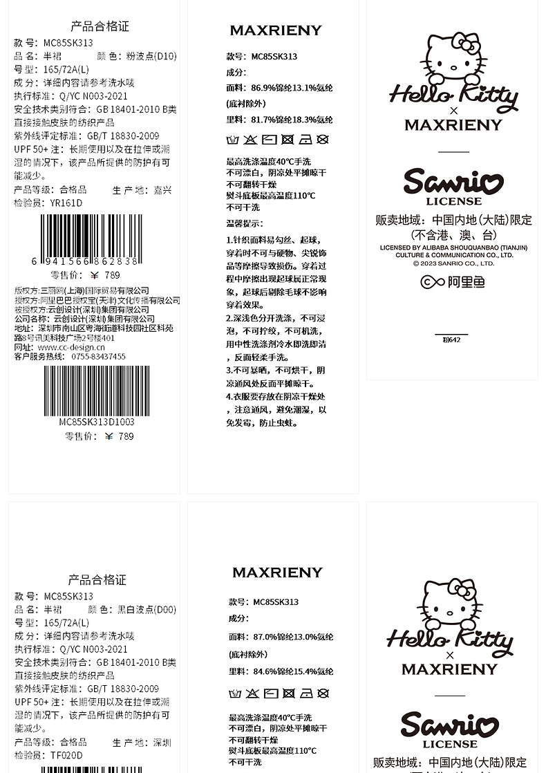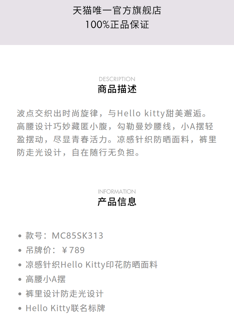 【Hello Kitty时尚防晒系列】MAXRIENYKitty防晒半裙波点2024夏款(货号:MC85SK313)