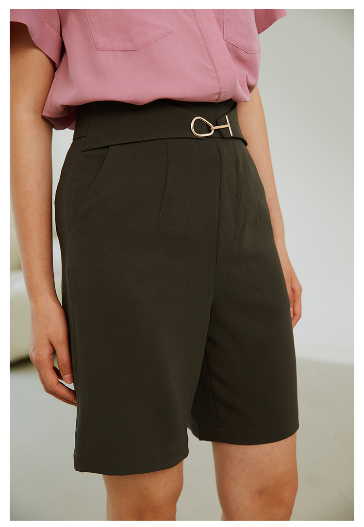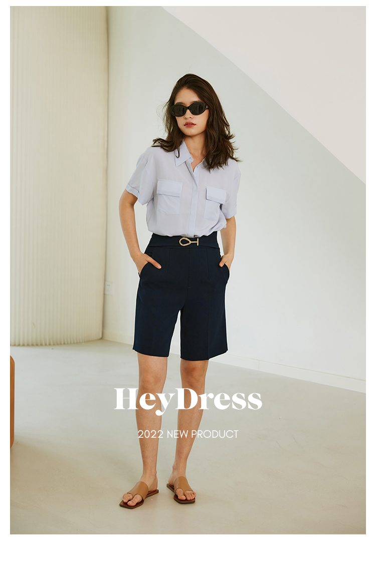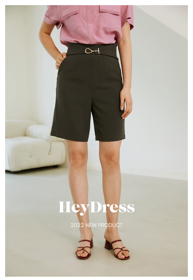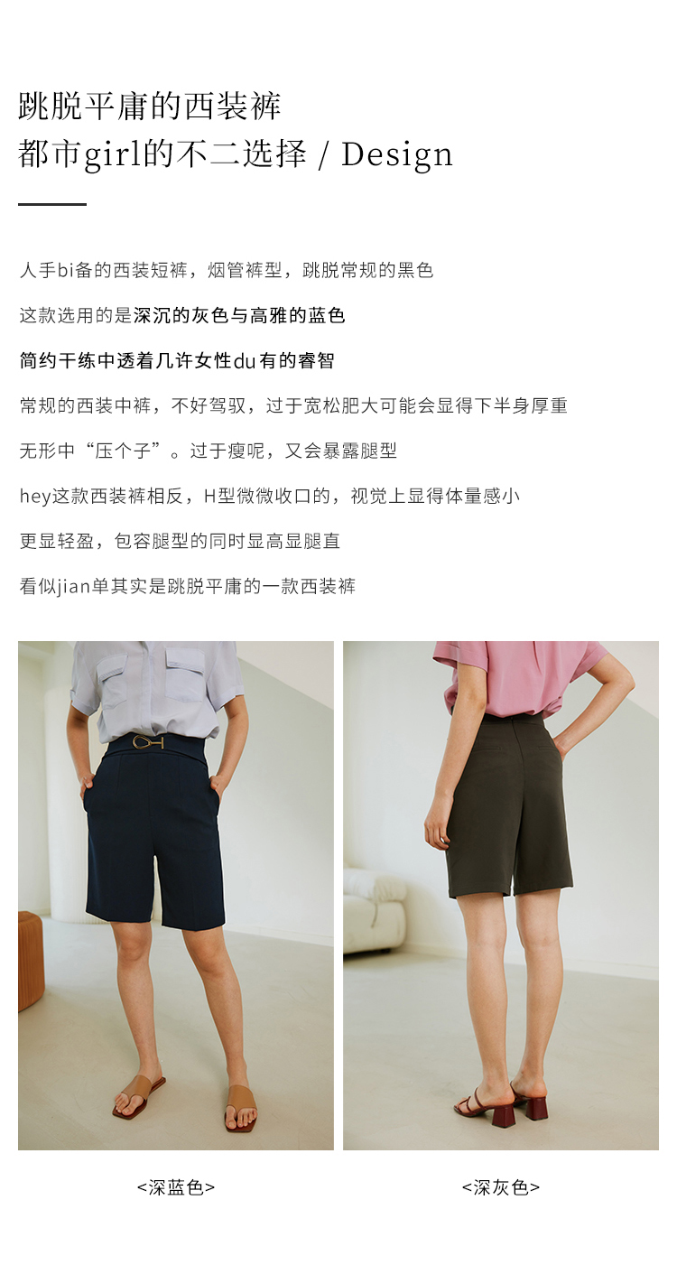 HeyDress西装短裤女宽松直筒中裤高腰五分休闲裤子