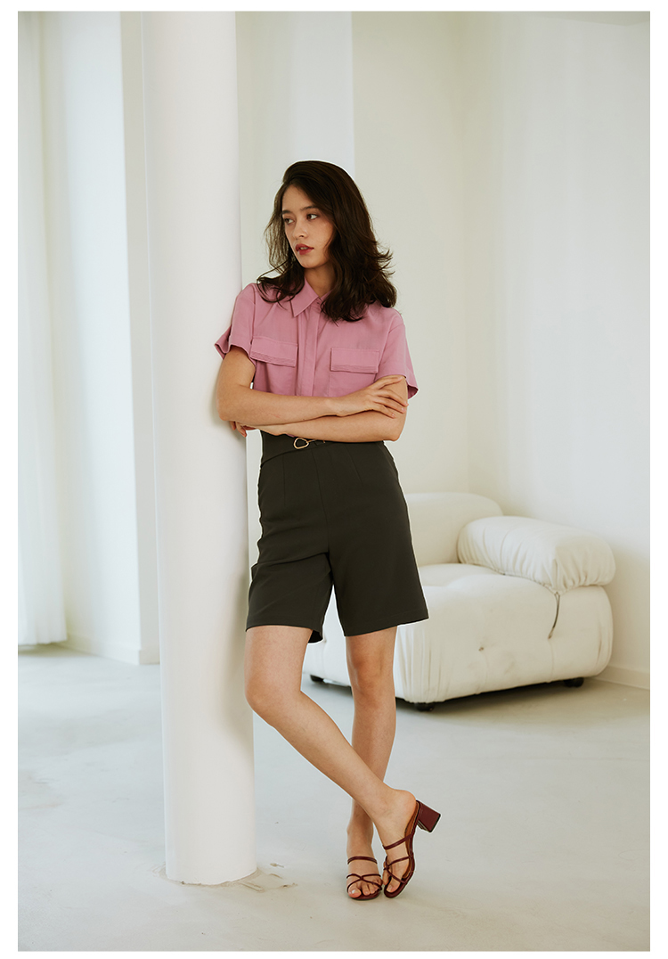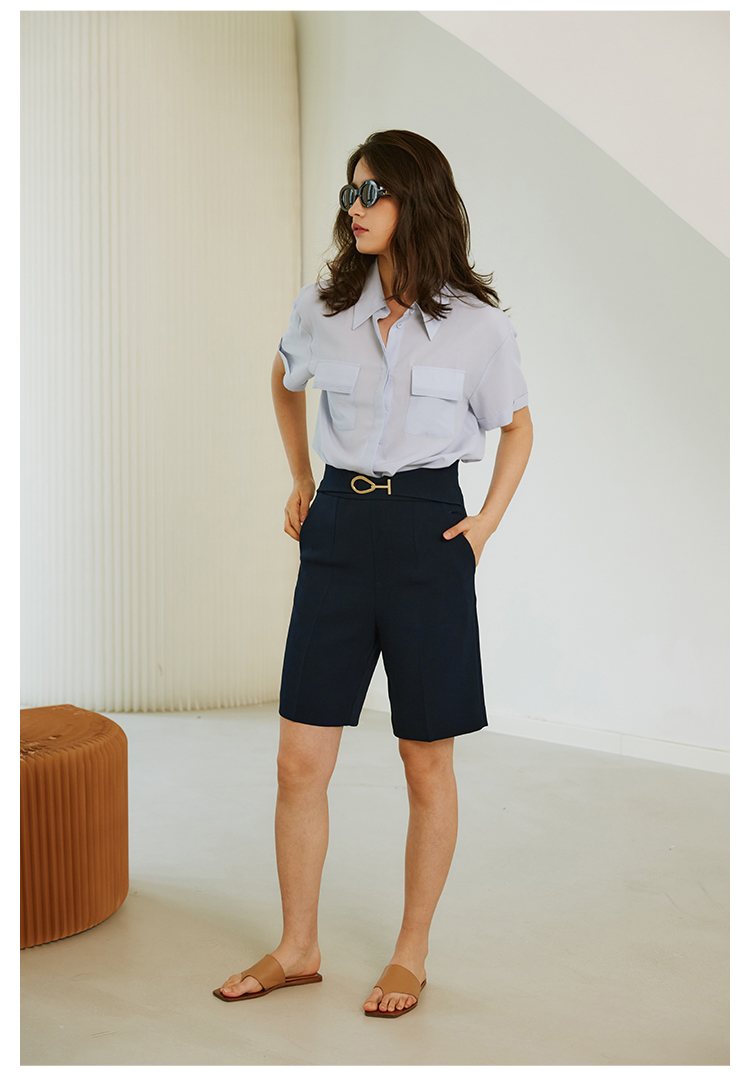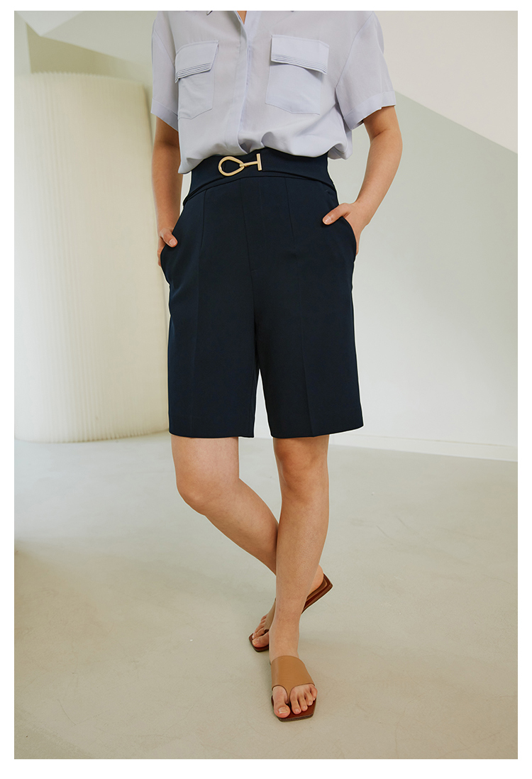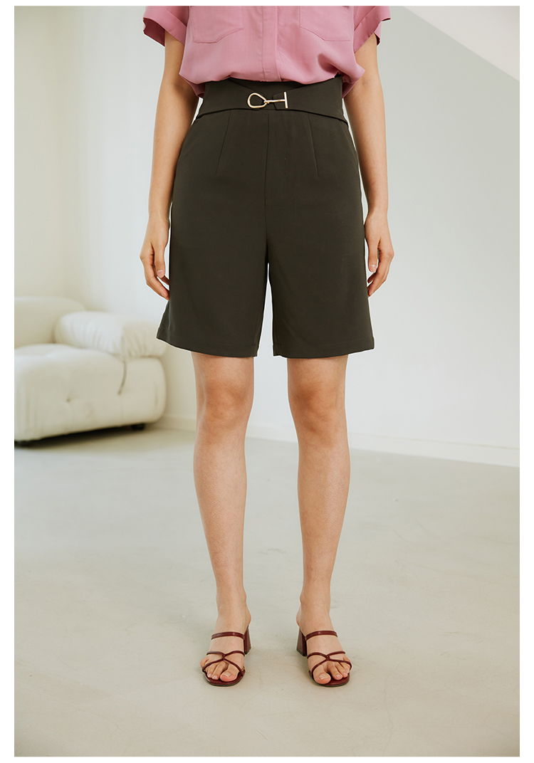 HeyDress西装短裤女宽松直筒中裤高腰五分休闲裤子