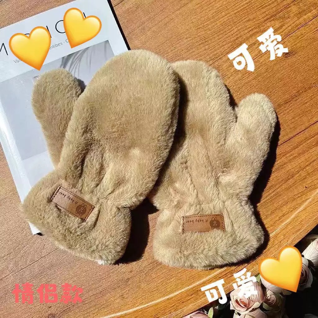 【奶呼呼可爱敲保暖❗️内柔加绒柔软舒服】冬天加绒仿兔毛手套连指毛绒秋冬季保暖手套时尚可爱甜美女生学生。hb