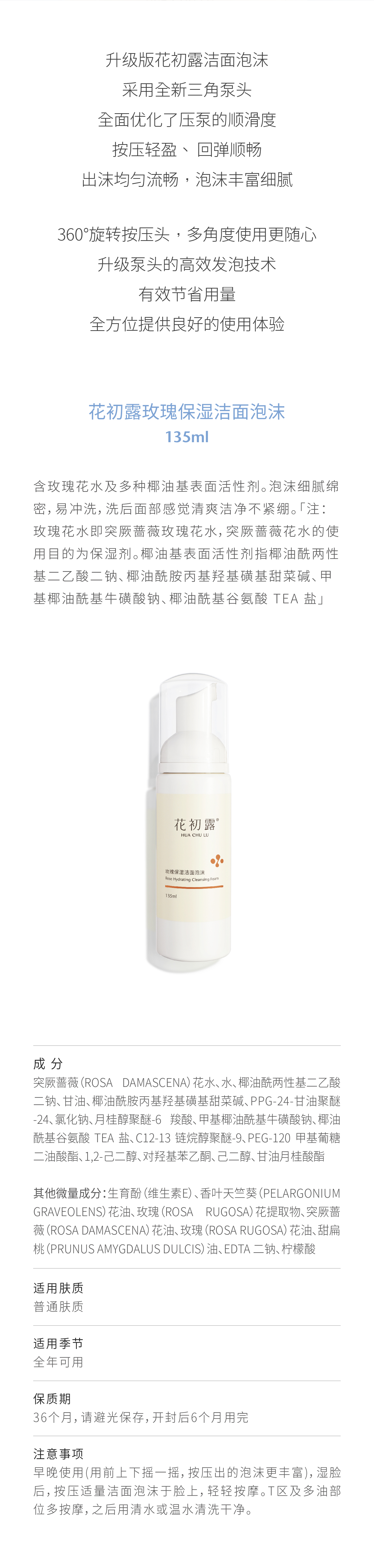 玫瑰保湿洁面泡沫 | 135ml/瓶 植物氨基酸表活 云朵般细腻 洗面奶洁面乳 花初露