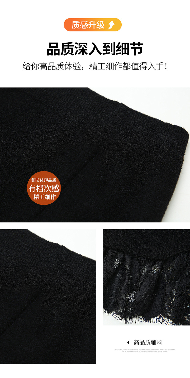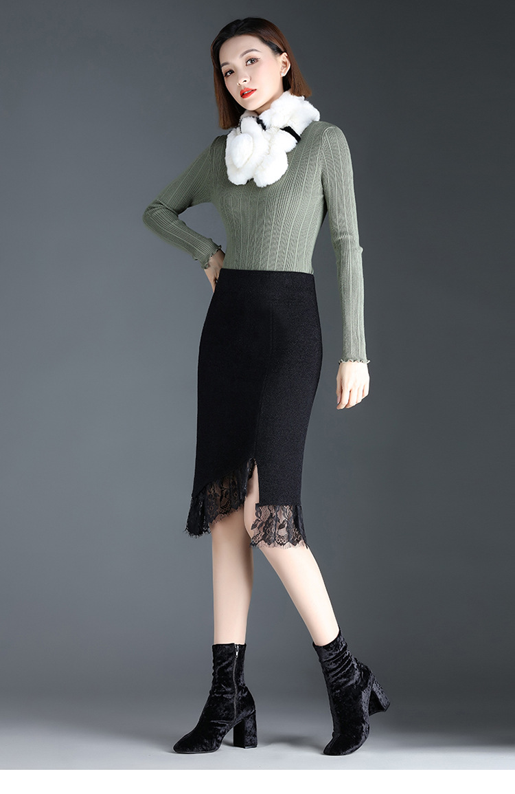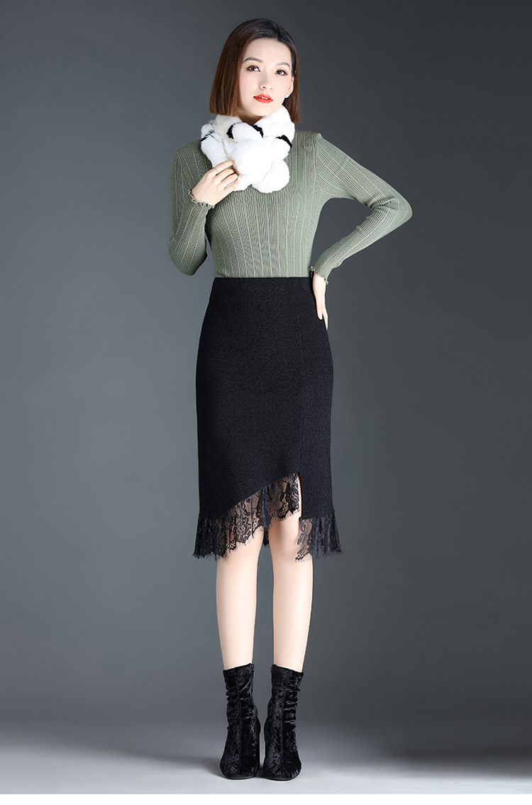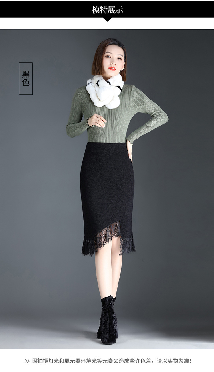 MYX-WM-68196-L中长款不规则黑色显瘦半身裙蕾丝拼接针织包臀裙秋冬款高腰一步裙