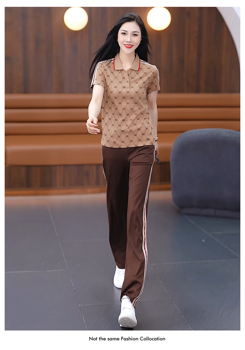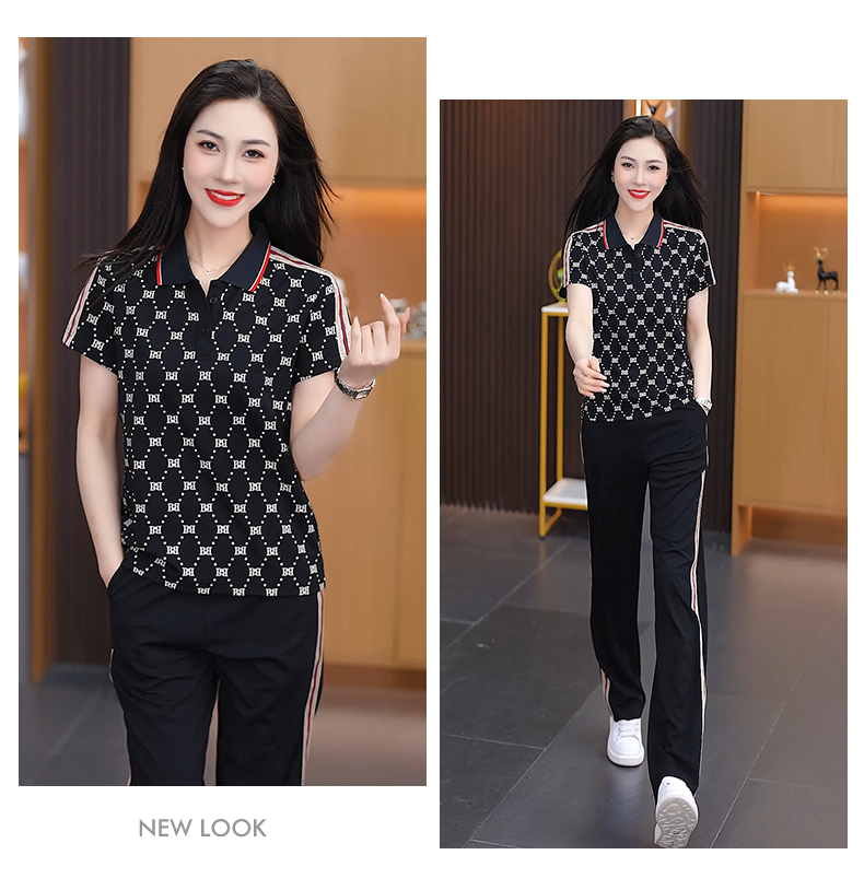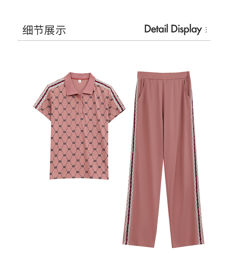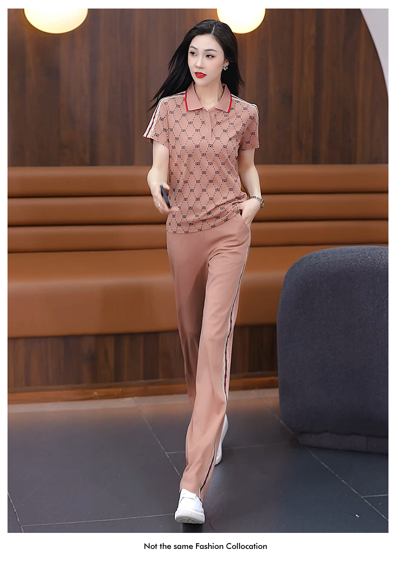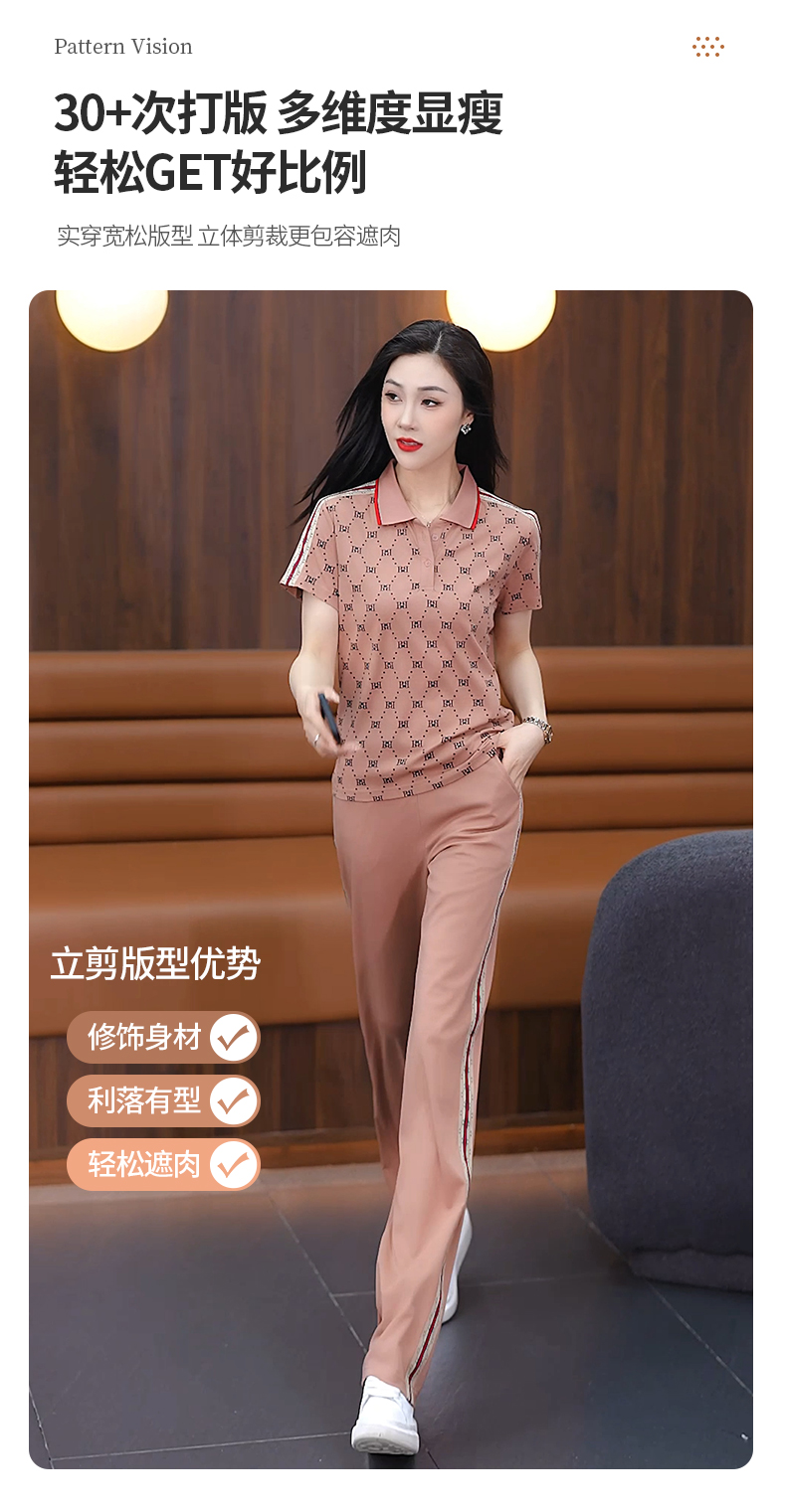 SP183-3092短袖运动套装女2025夏季新款时尚洋气花色显瘦长裤跑步休闲两件套