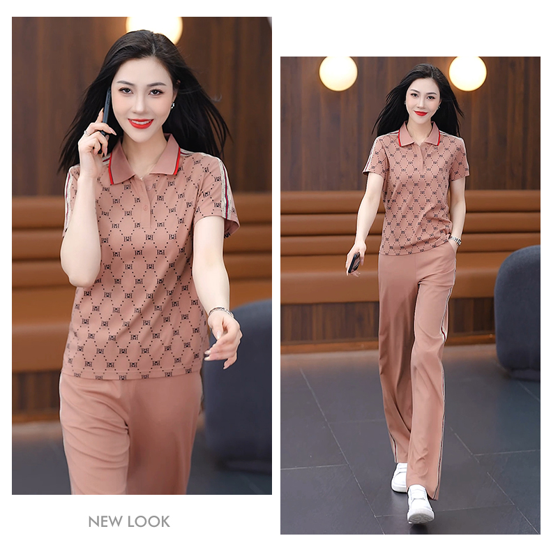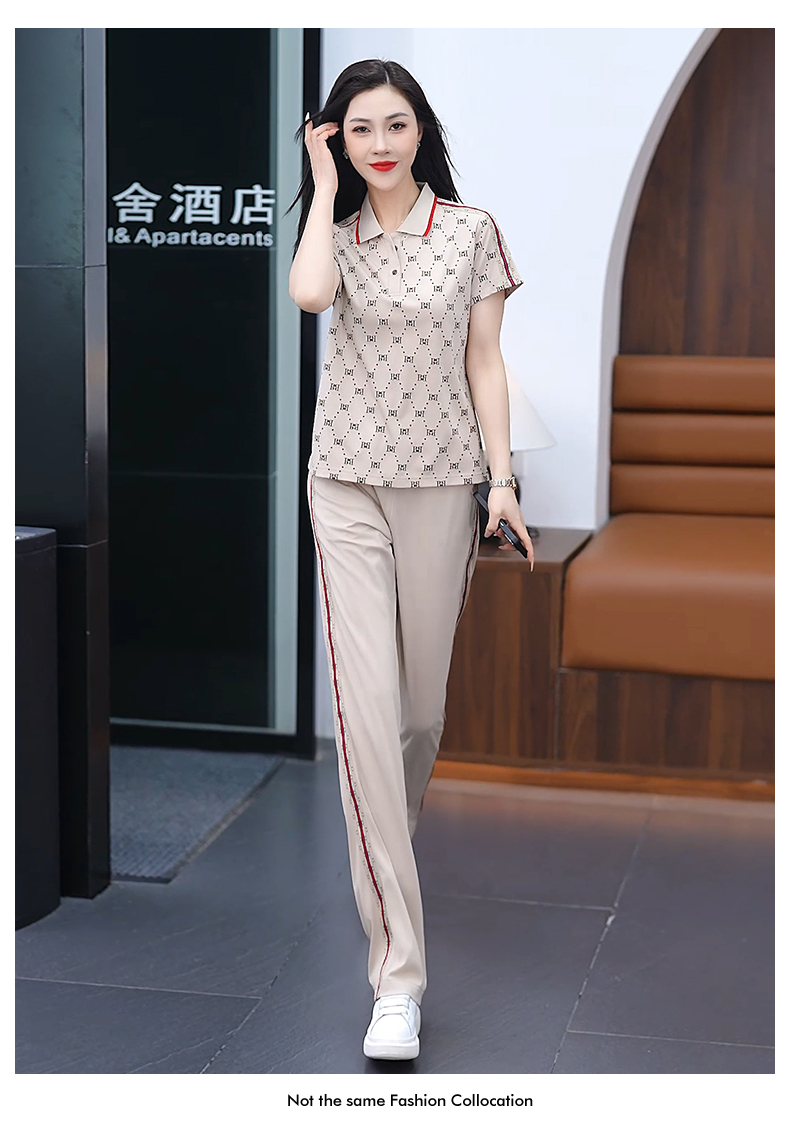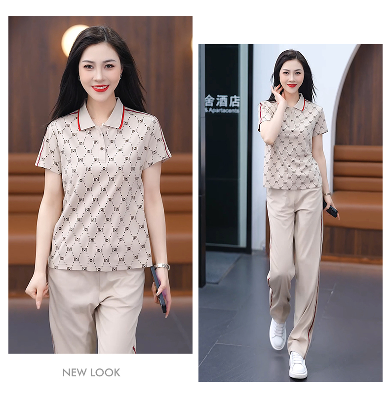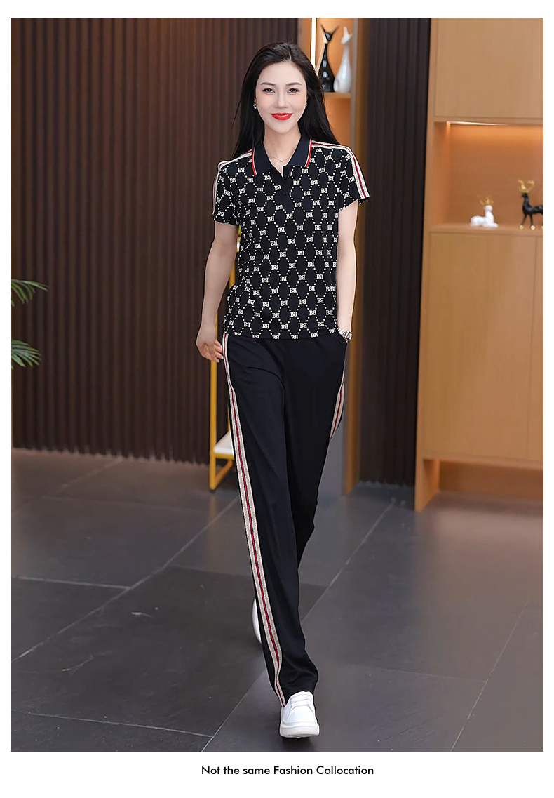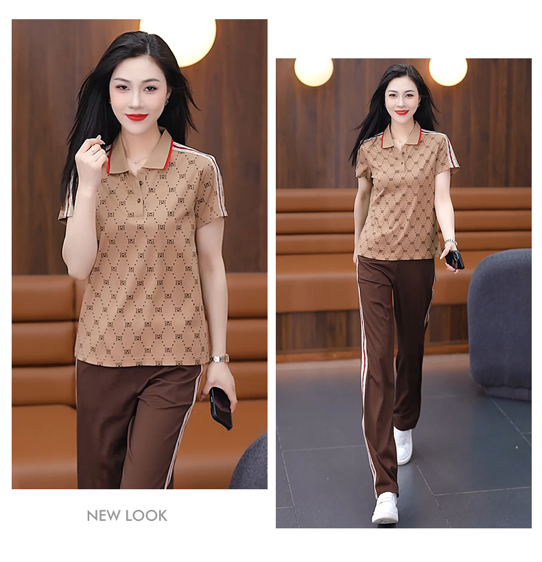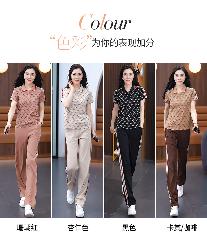 SP183-3092短袖运动套装女2025夏季新款时尚洋气花色显瘦长裤跑步休闲两件套