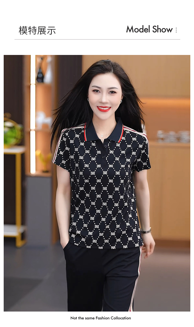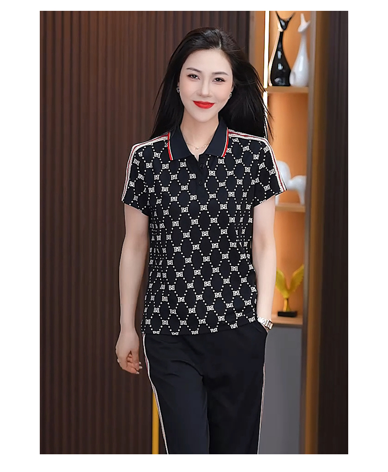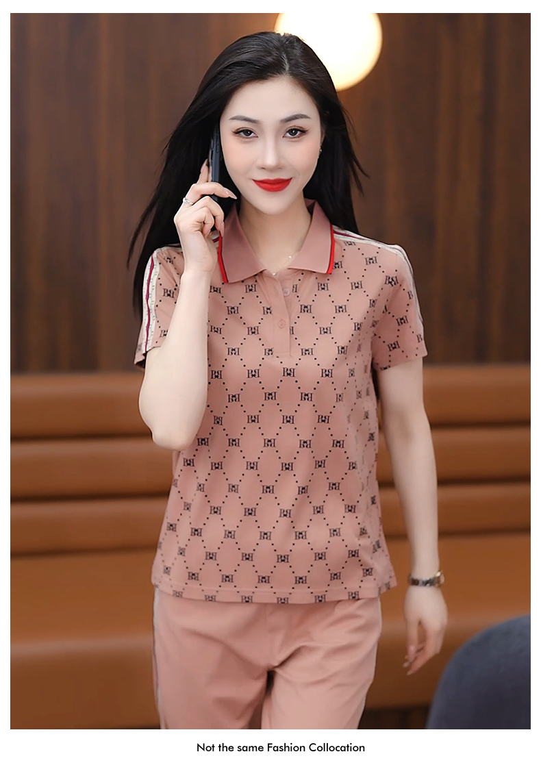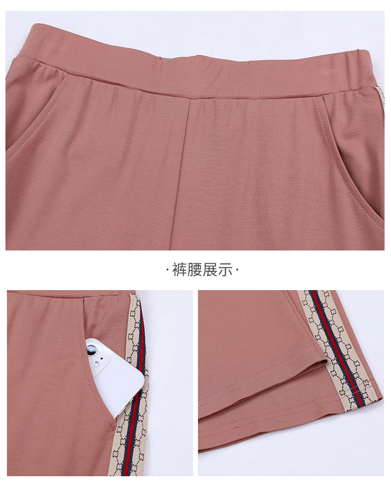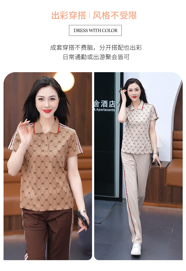 SP183-3092短袖运动套装女2025夏季新款时尚洋气花色显瘦长裤跑步休闲两件套