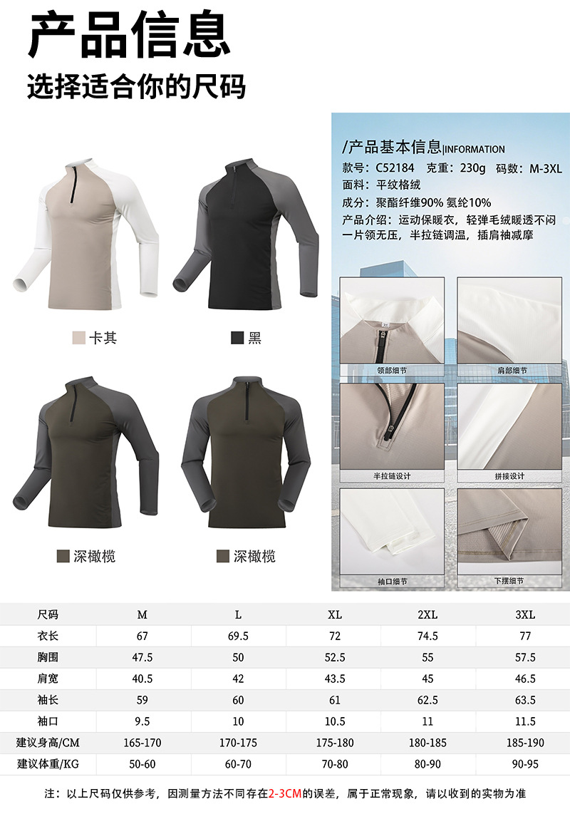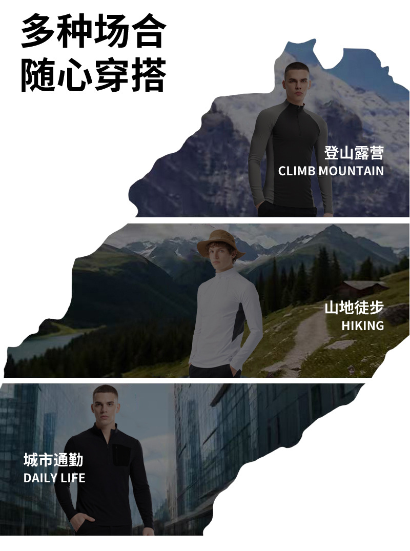 跃牌【跃LEAP-ACTIVE】男秋冬抓绒保暖立领半拉链速干运动衣长袖骑行服C52184