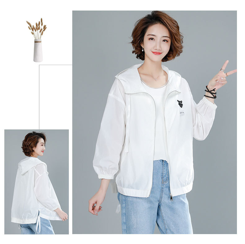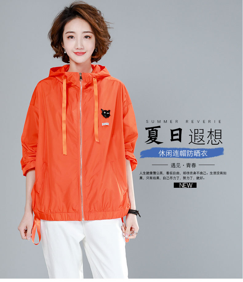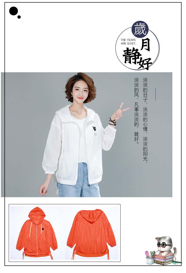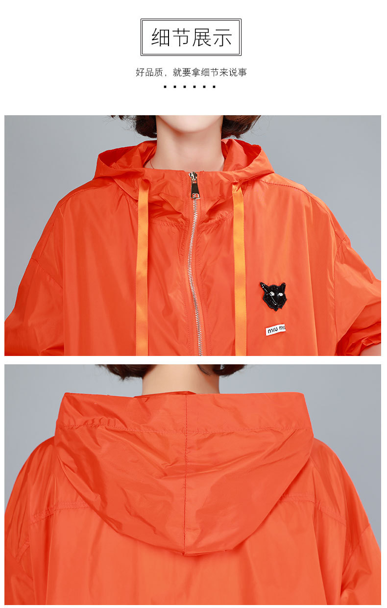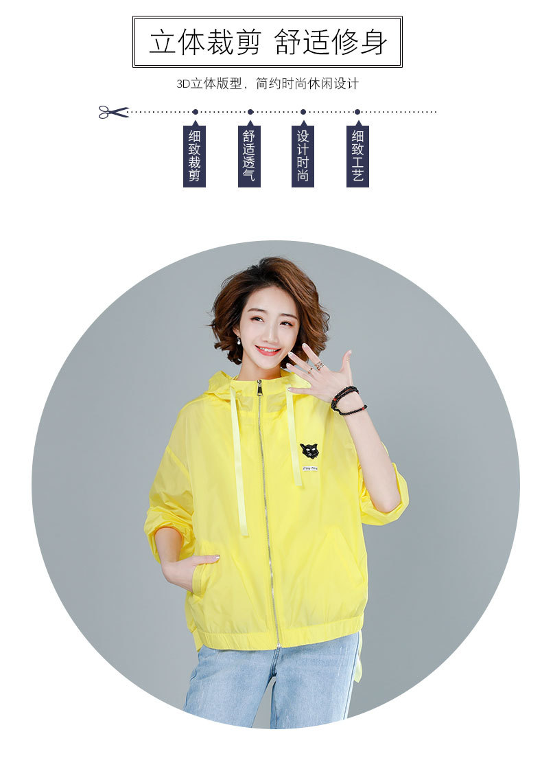 丁摩 轻薄单层连帽防晒衣女夏季开衫新款宽松遮肚防晒服空调衫5ZF-1929