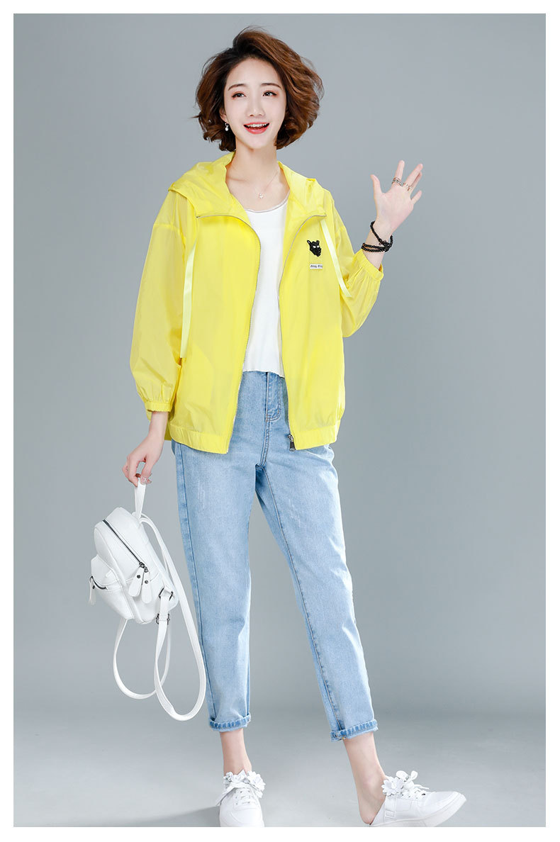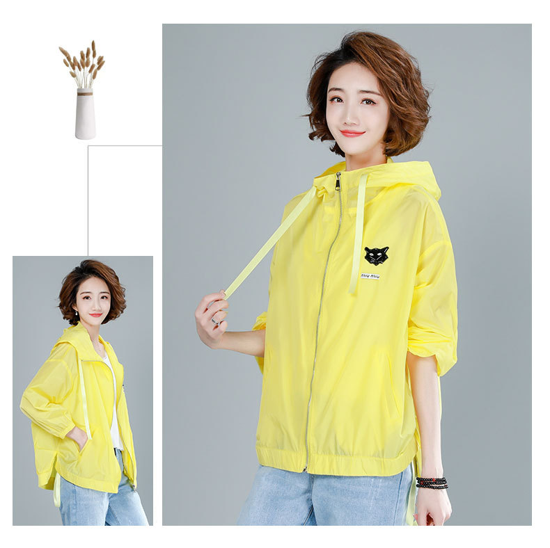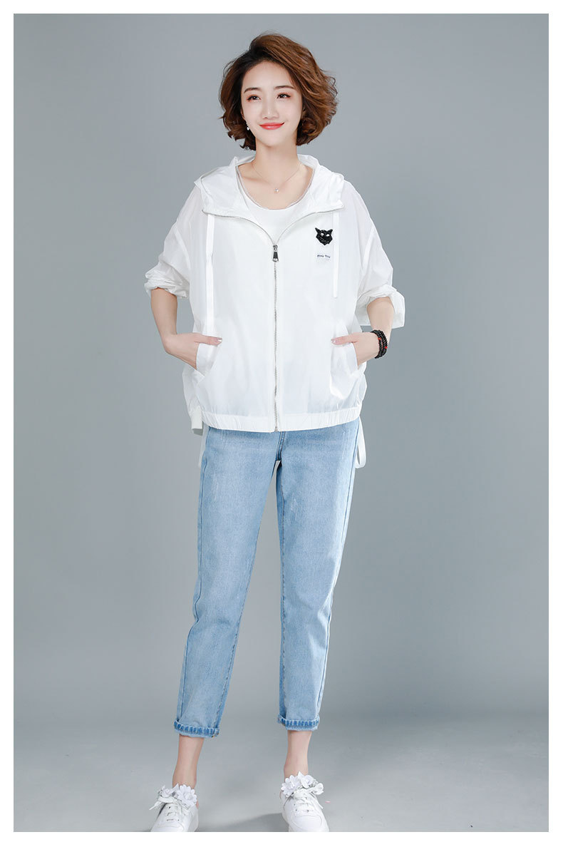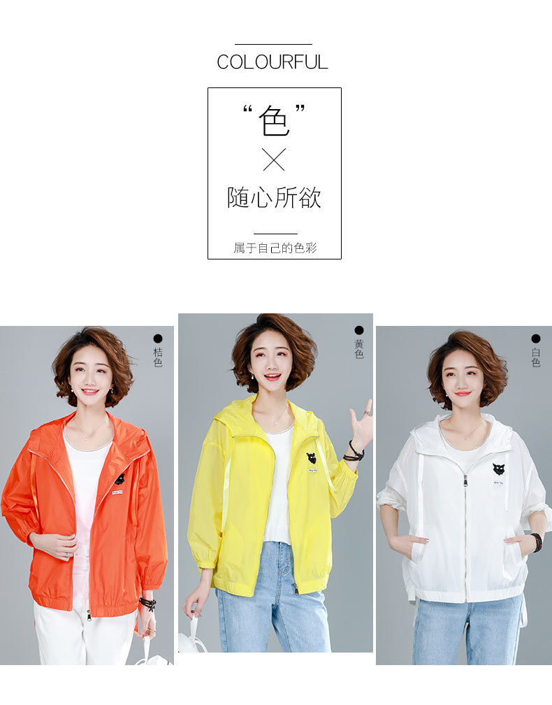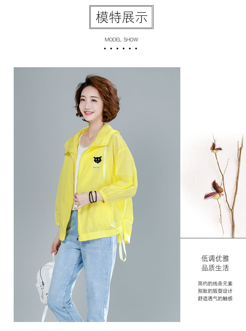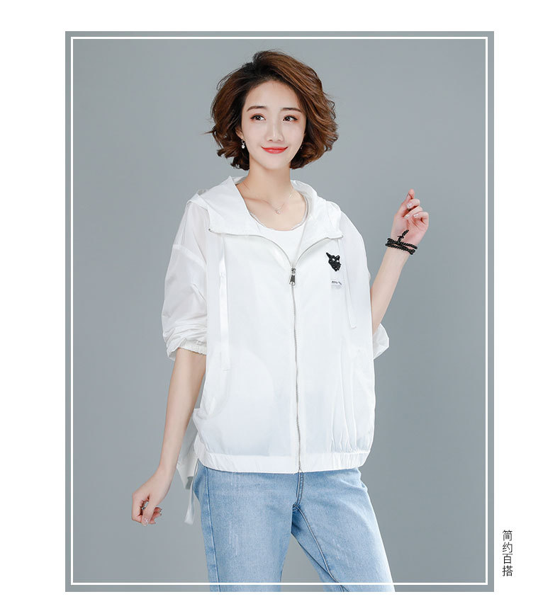 丁摩 轻薄单层连帽防晒衣女夏季开衫新款宽松遮肚防晒服空调衫5ZF-1929