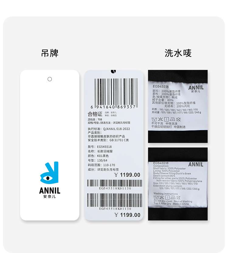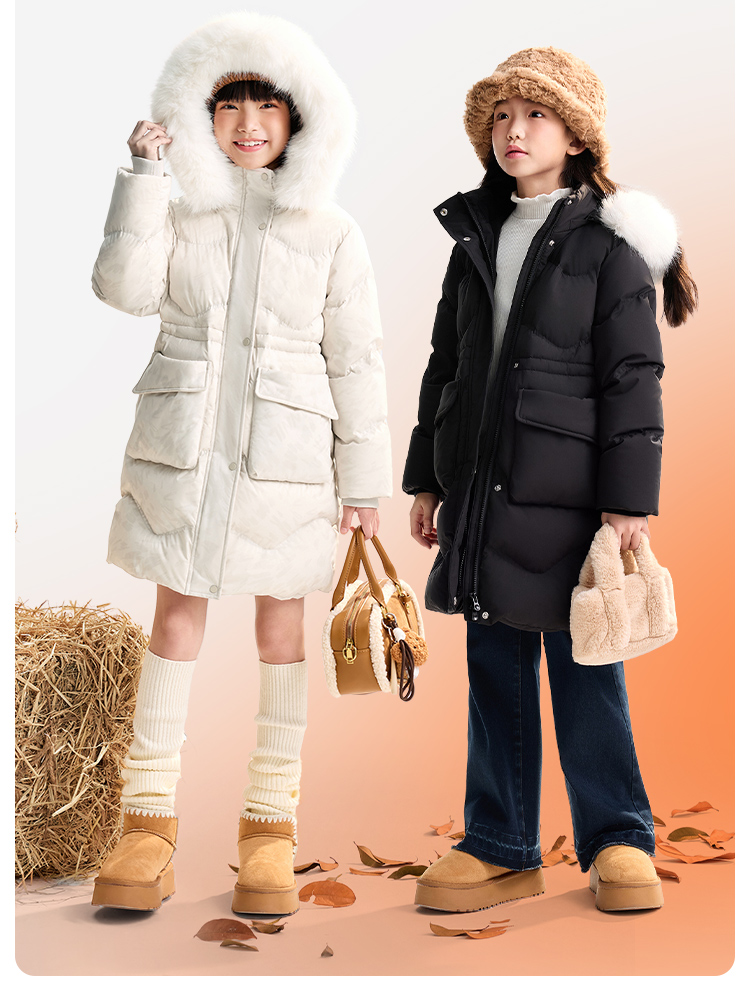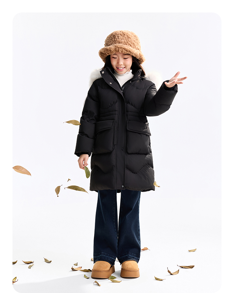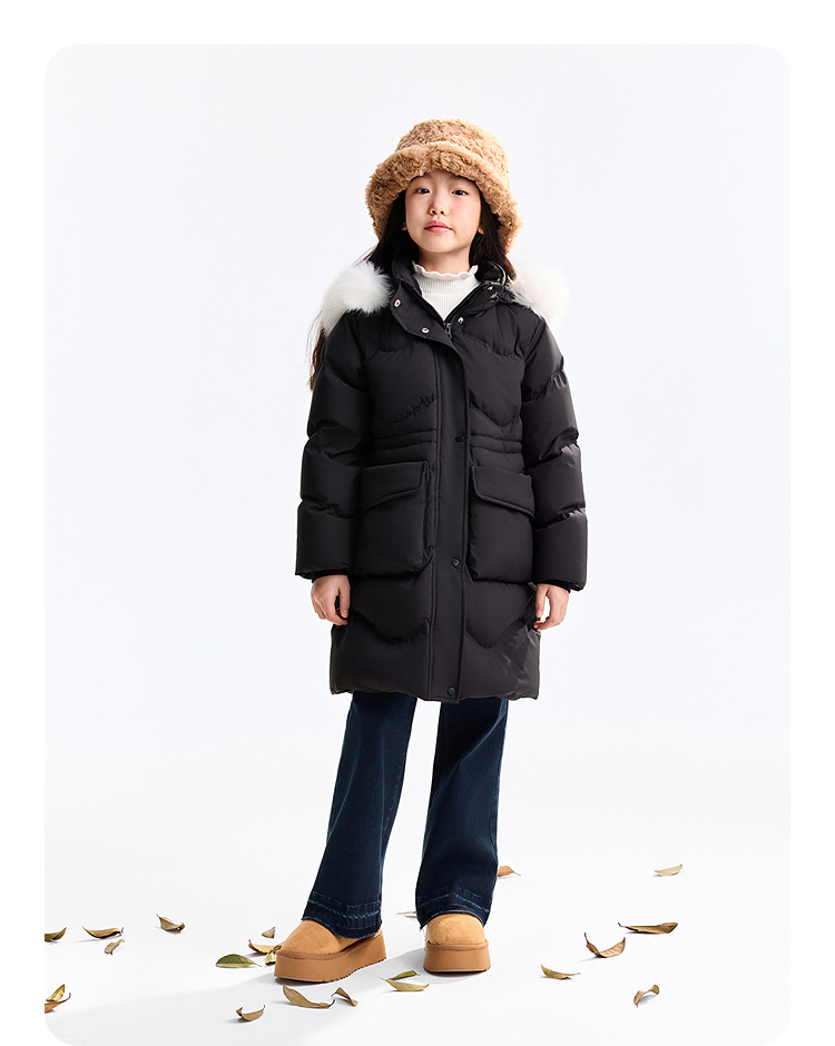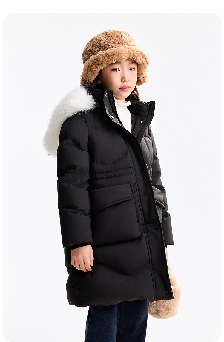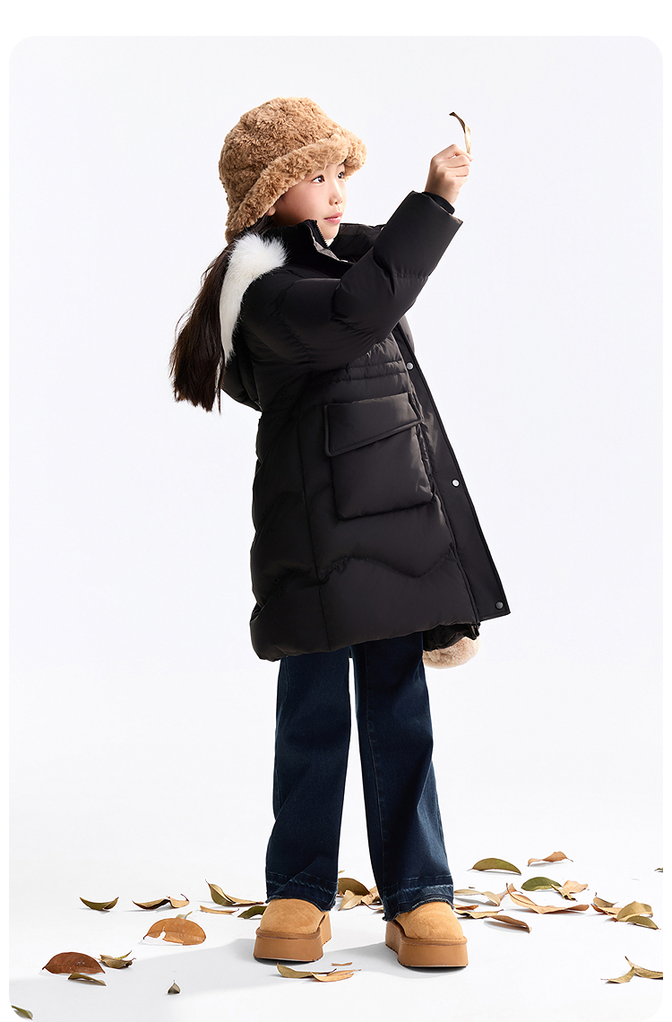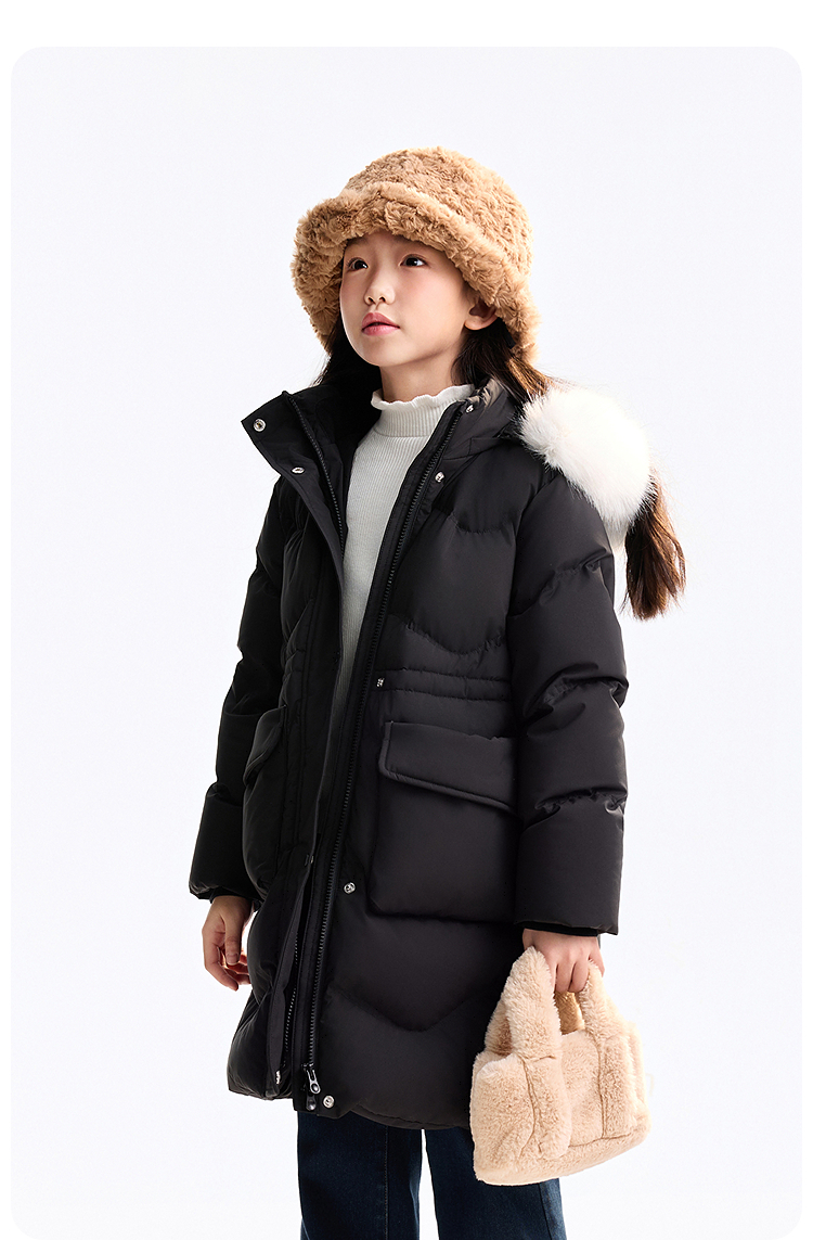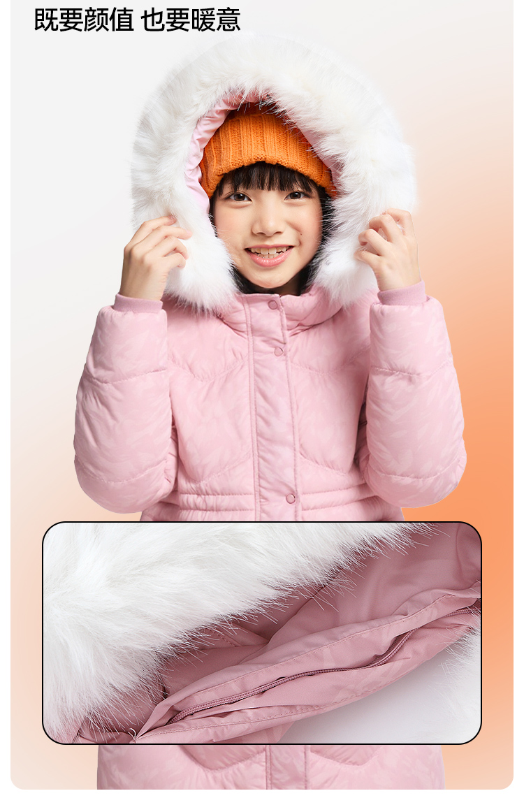 女童可拆卸毛圈帽子长款羽绒服冬季新款安奈儿童装EG545518