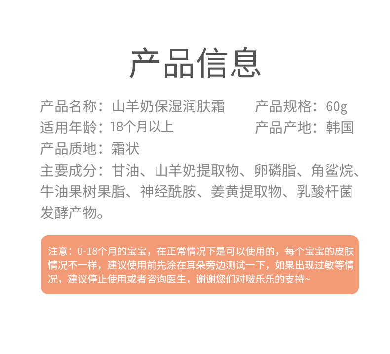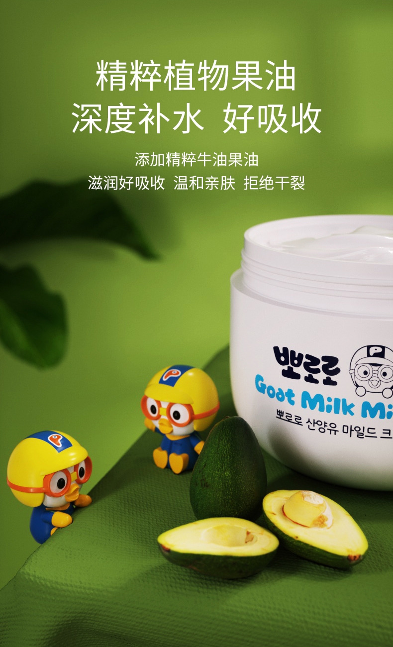 韩国进口Pororo啵乐乐婴儿面霜60g新款山羊奶婴幼儿润肤乳身体乳宝露露保湿霜儿童