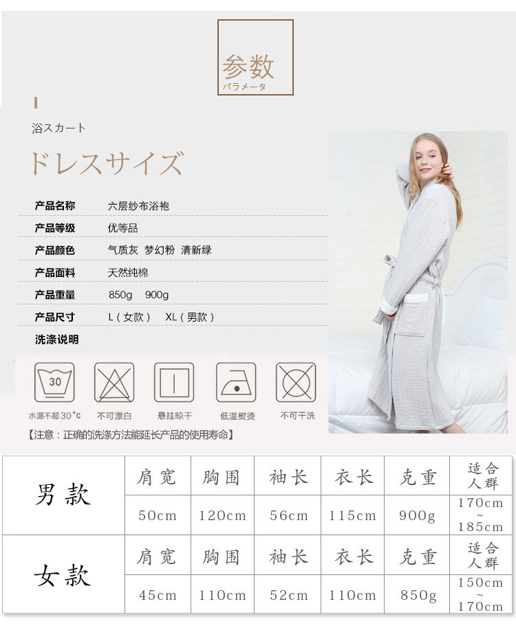 RR-13659新品长款家居服六层纱布毛巾料浴袍