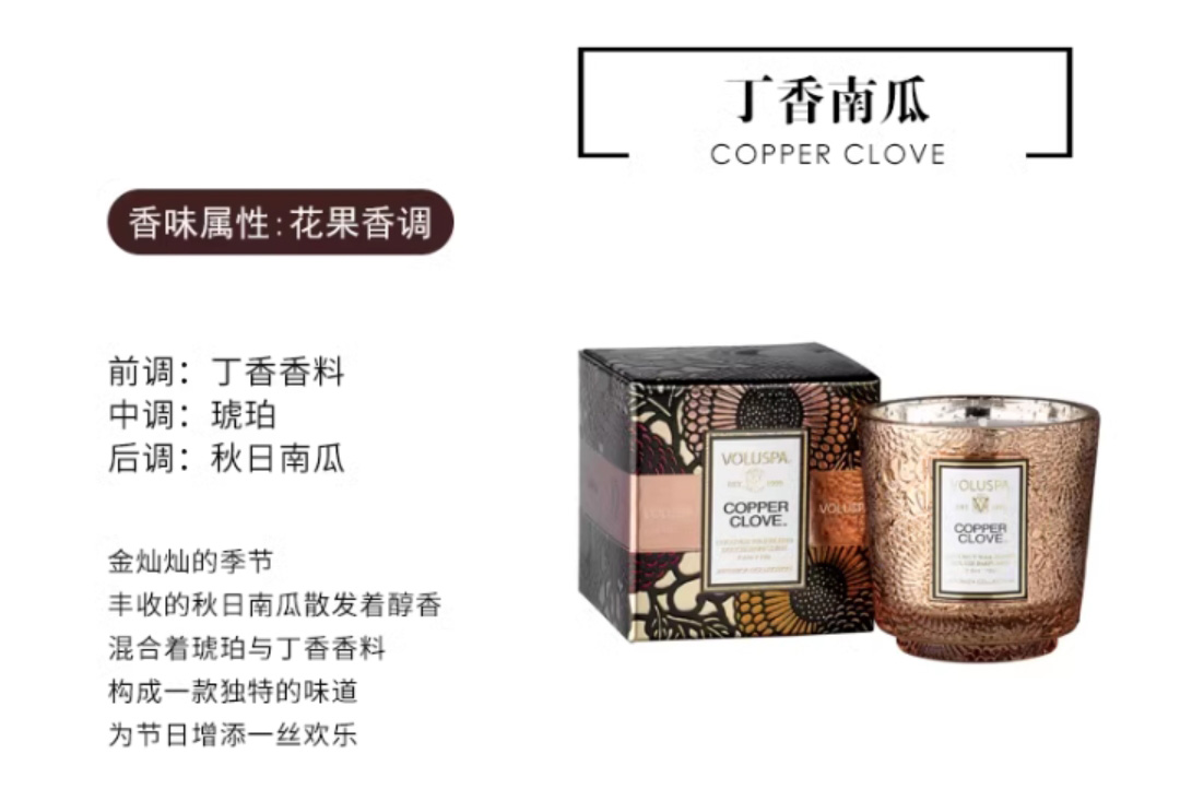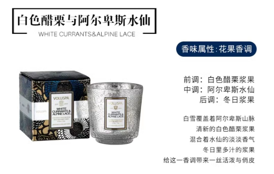 VOLUSPA 小浮雕蕾丝杯香薰蜡烛-72g
