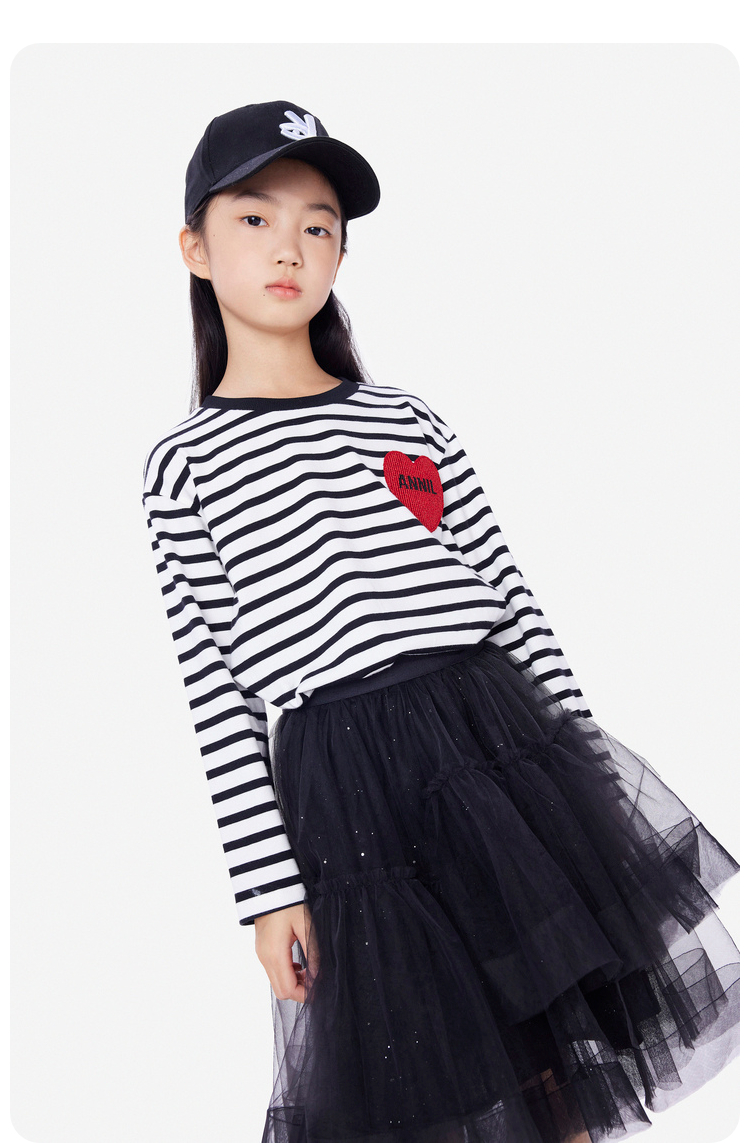 女童圆领长袖针织衫秋季新款安奈儿童装EG531592