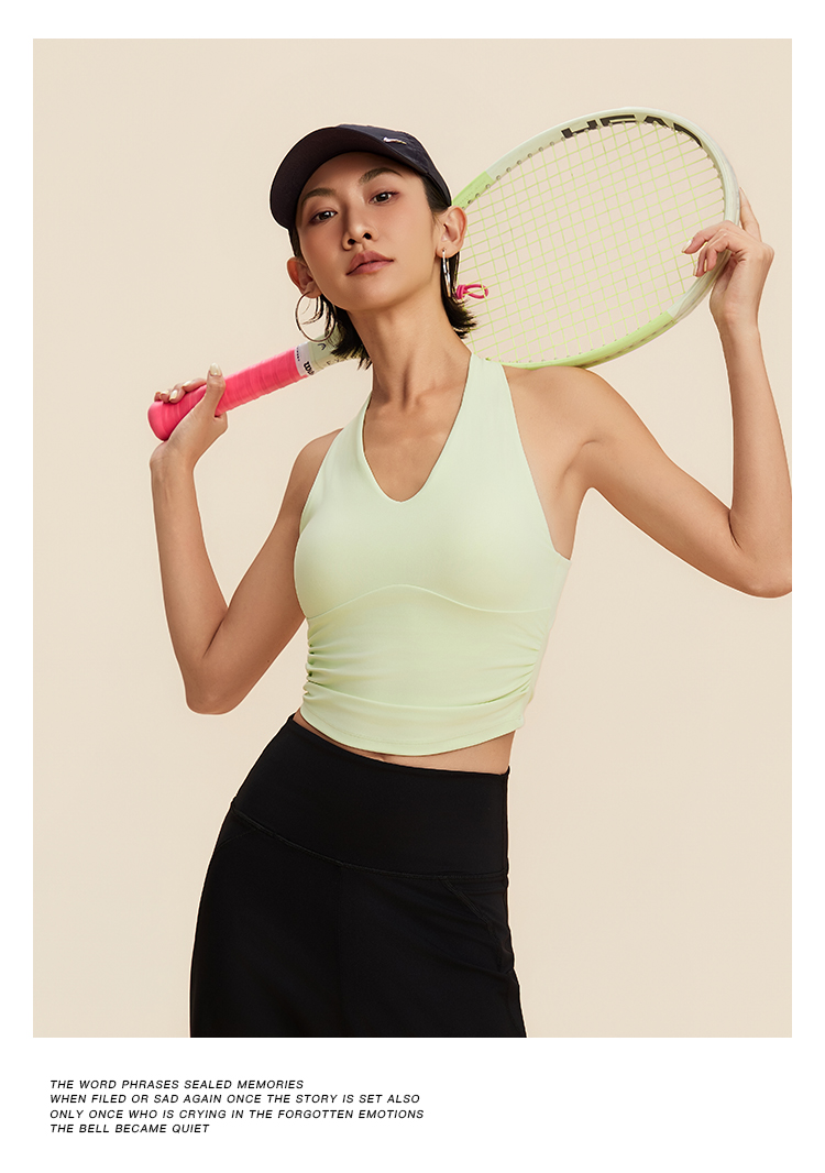 跃牌【海听系列】新款运动内衣女吊带挂脖式性感带胸垫运动健身美背上衣XC95