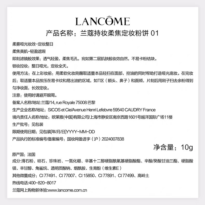 【3月】兰蔻持妆柔焦定妆粉饼 柔肤透粉平衡控油贴妆大粉饼