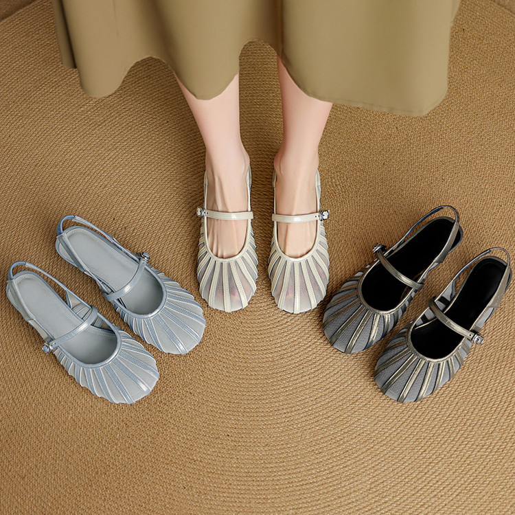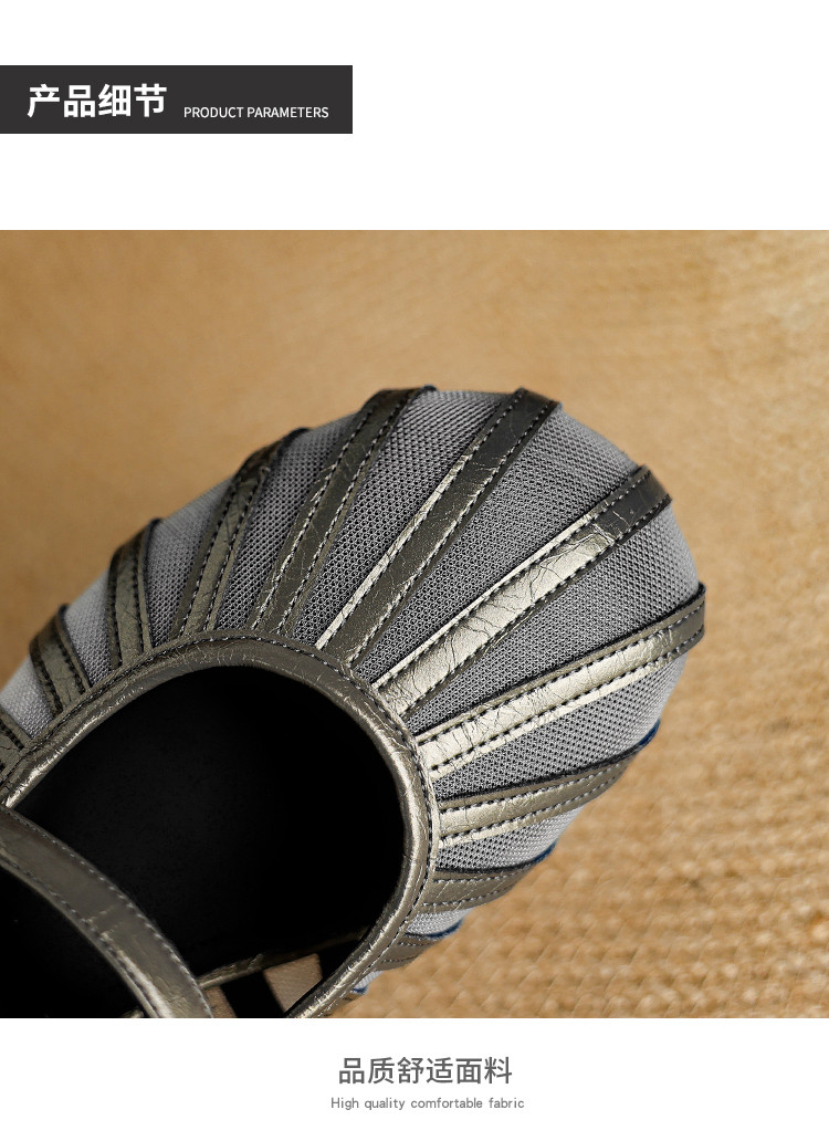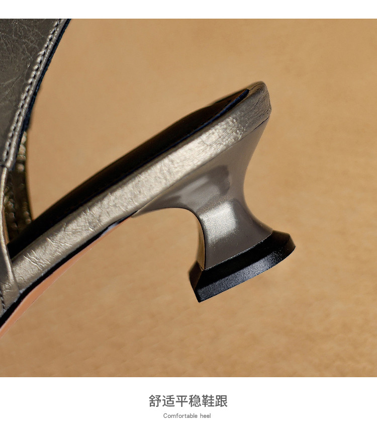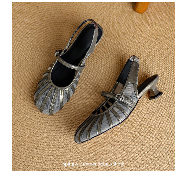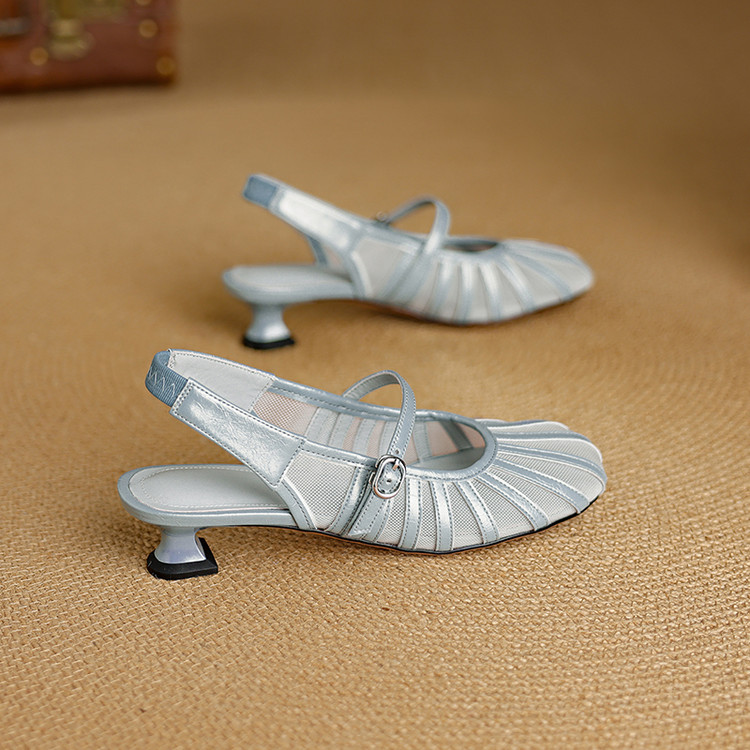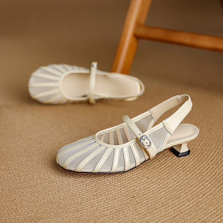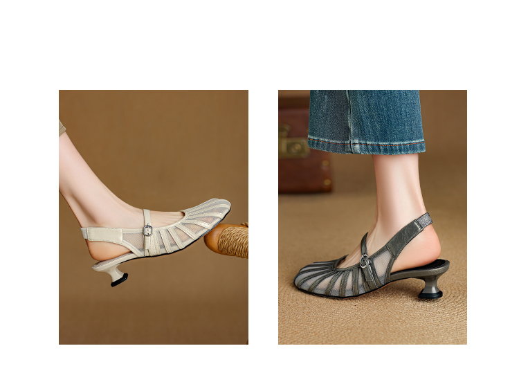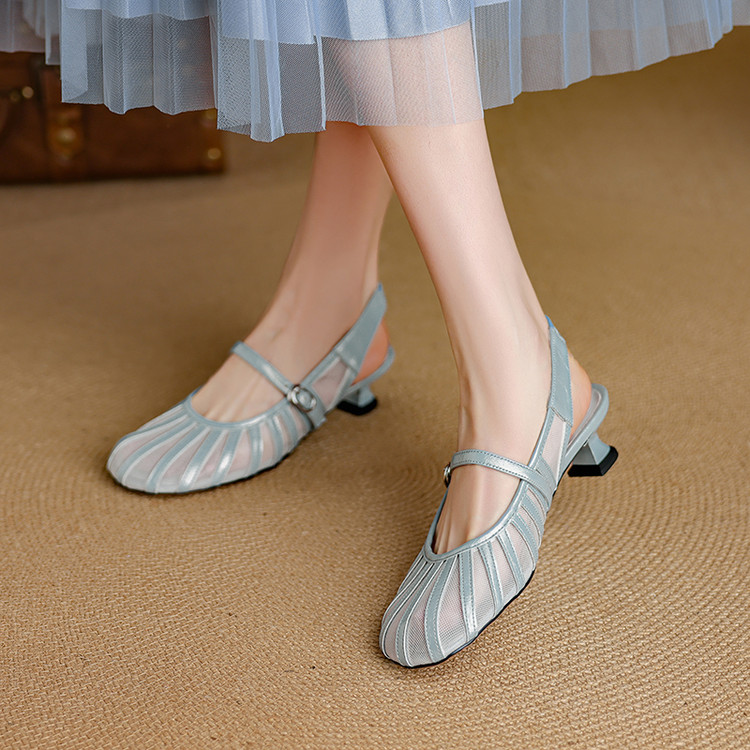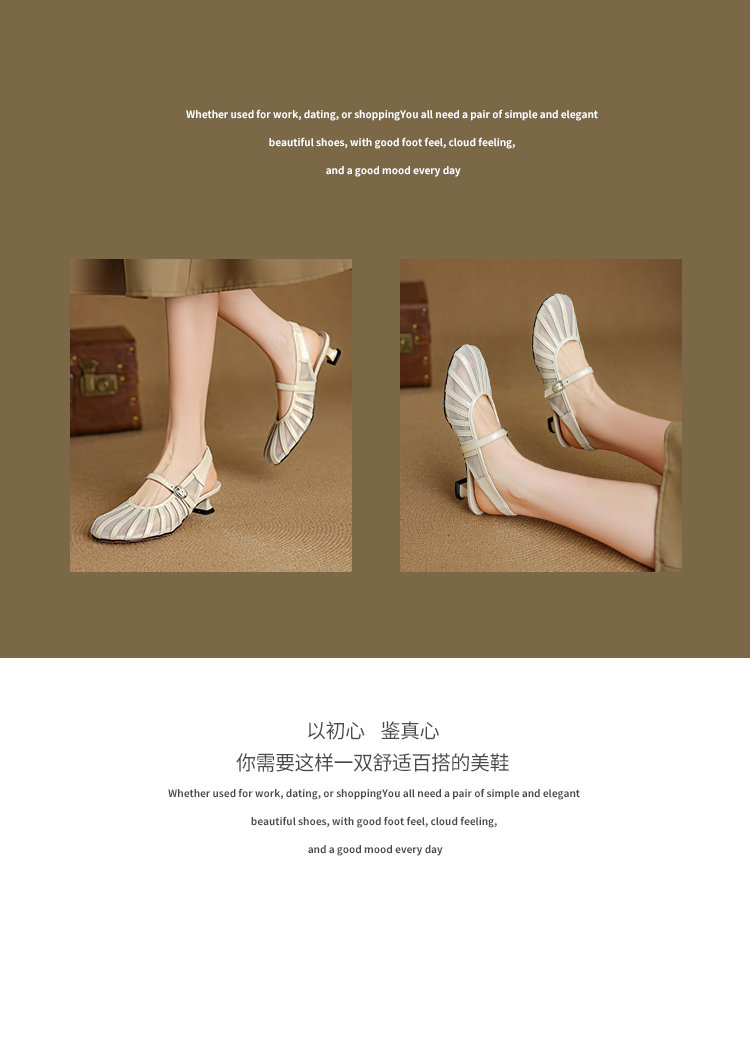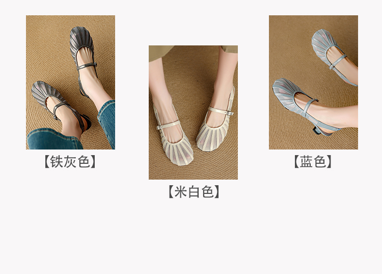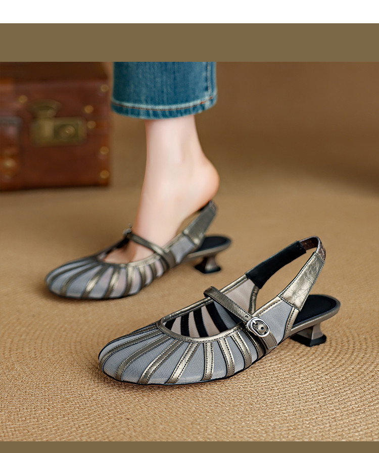 【预售5天】温柔玛丽珍风包头网纱后空凉鞋女新款韩版圆头粗中跟牛皮时装凉鞋NJMK&K1507