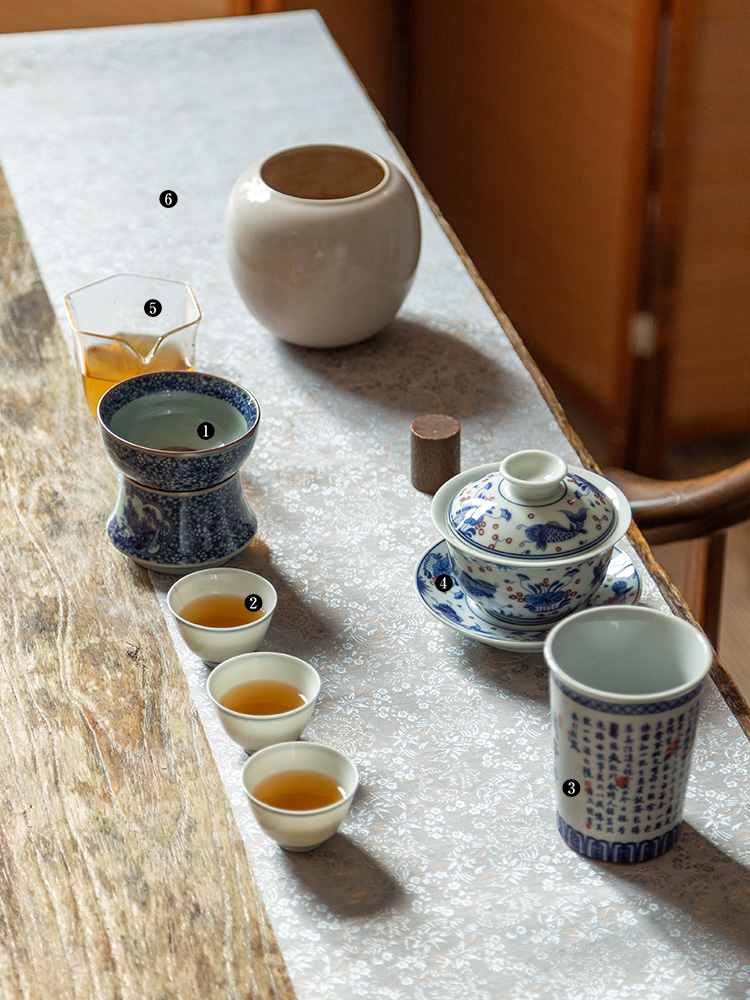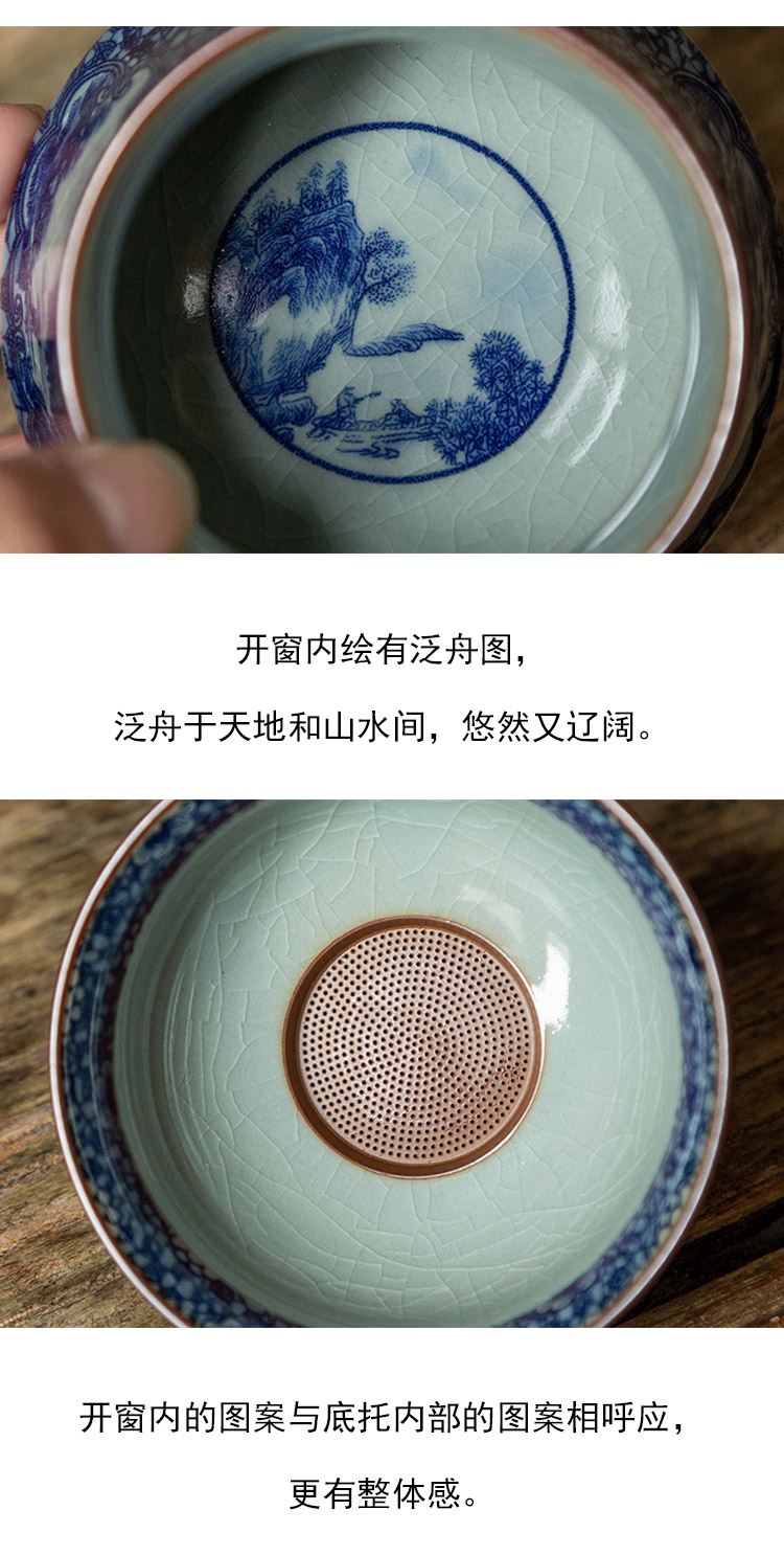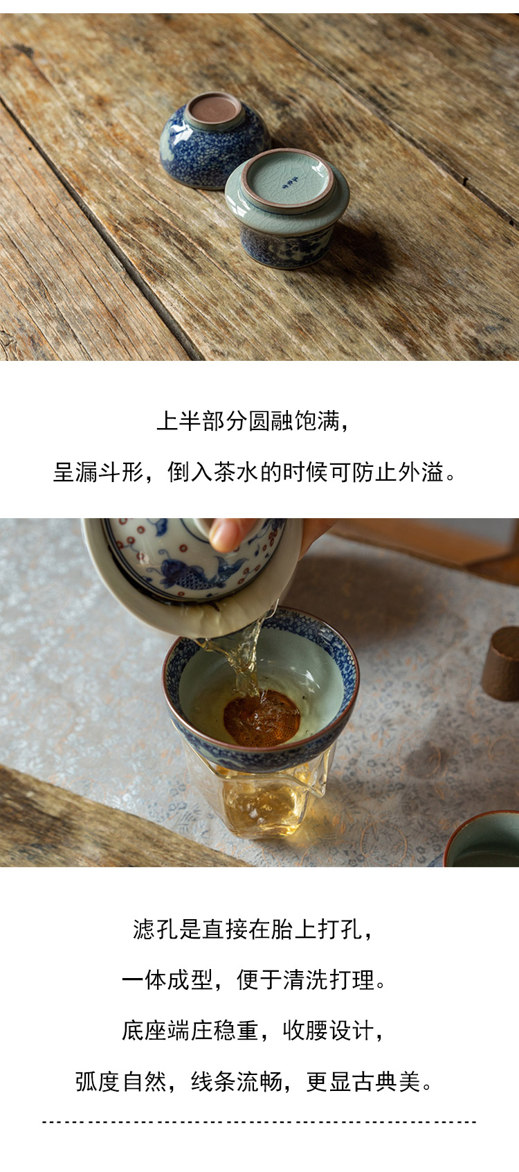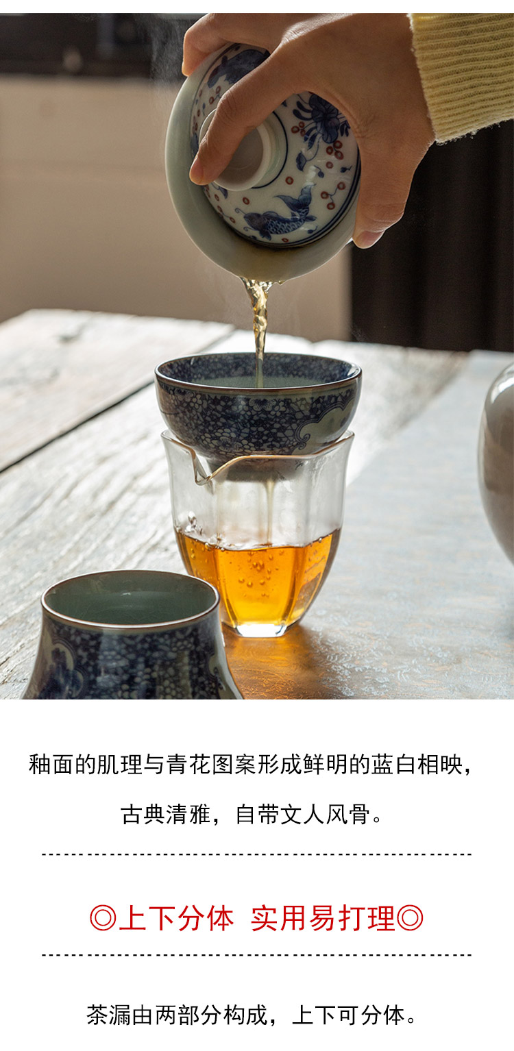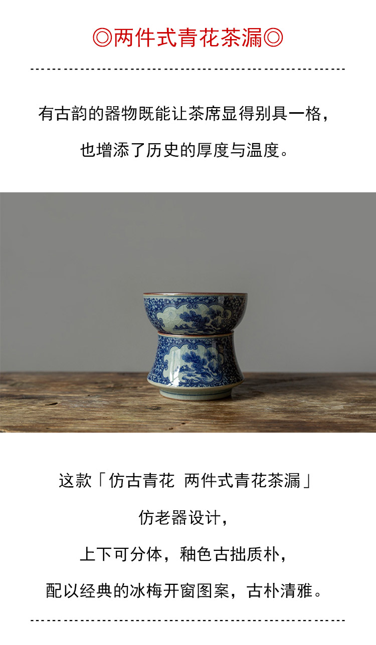 茶香记 仿古青花 两件式青花茶漏 茶道配件 上下分体 古典清雅 平价实用