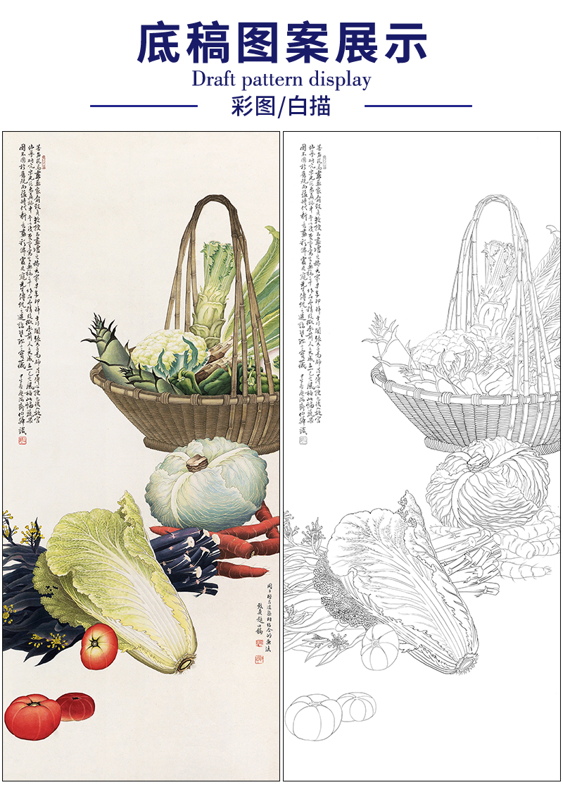 俞致贞花鸟蔬菜工笔画白描底稿《蔬果图》临摹勾线高清打印稿ZZ46