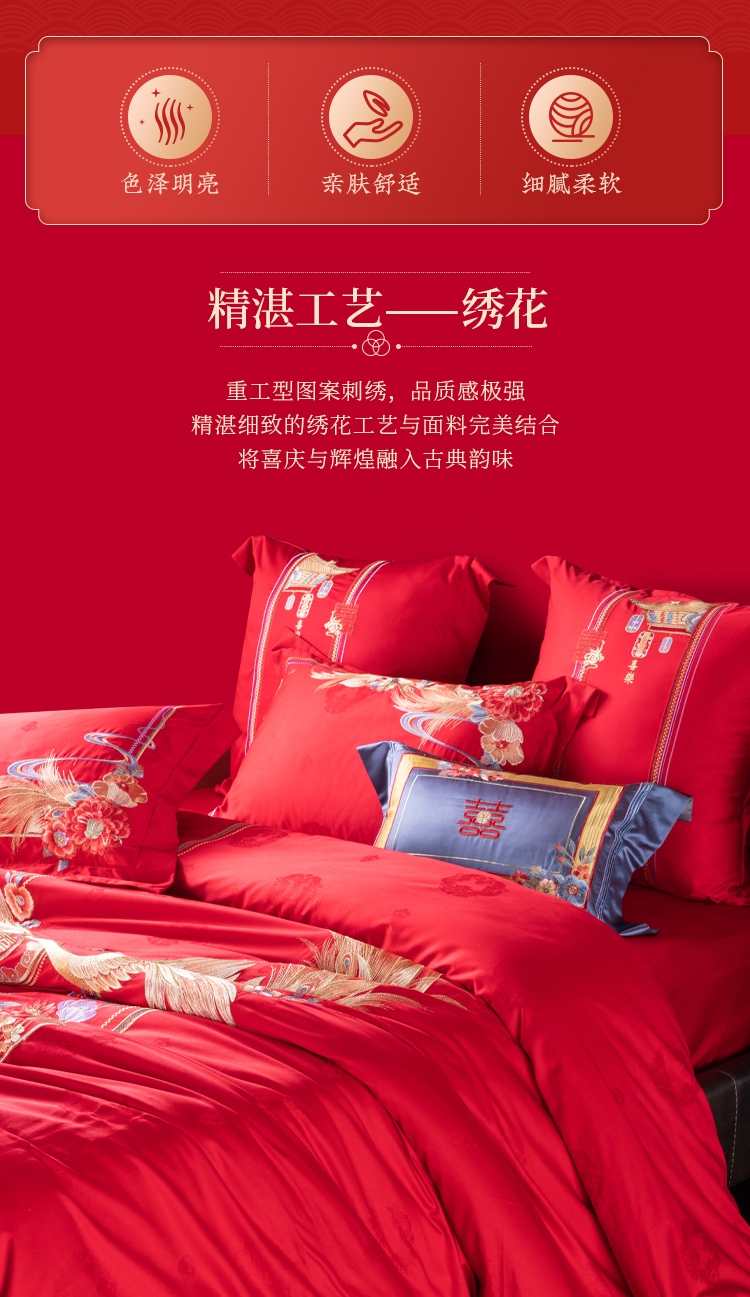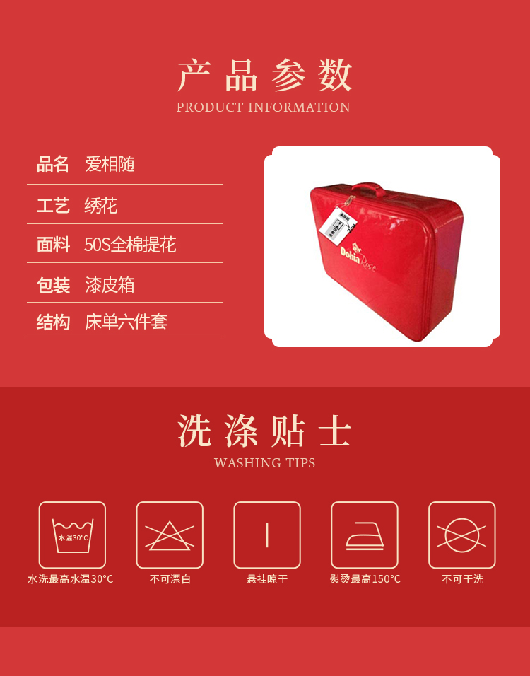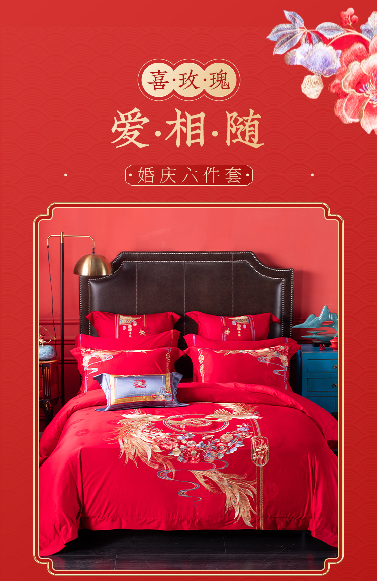 多喜爱 喜玫瑰婚庆新绒棉缎纹床上用品六件套 爱相随 cs