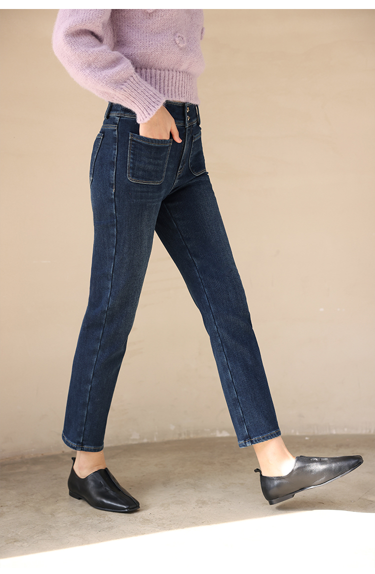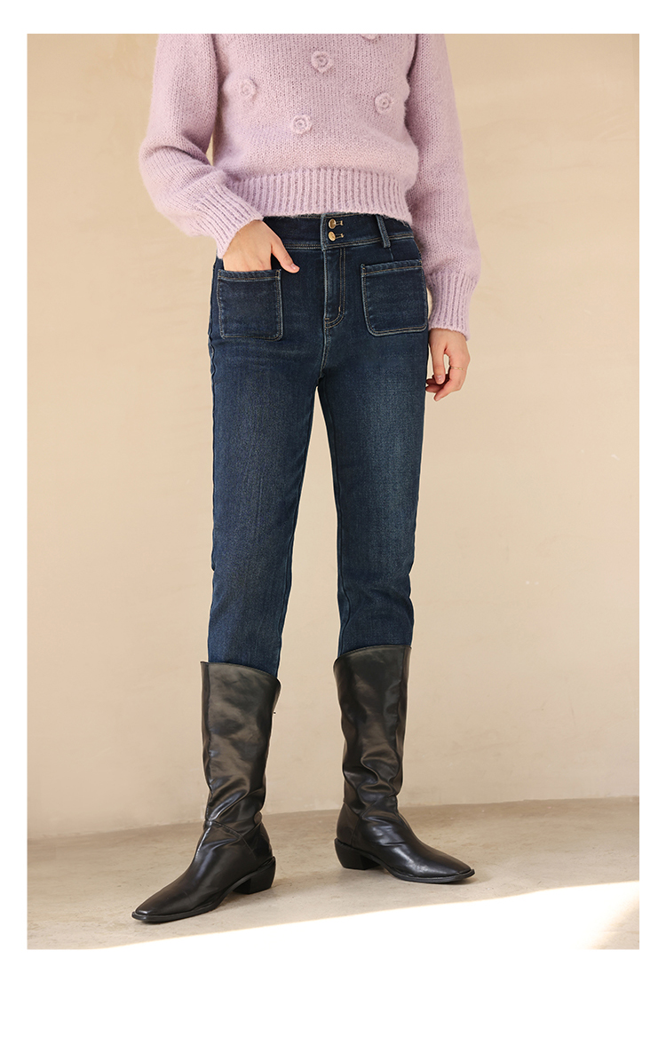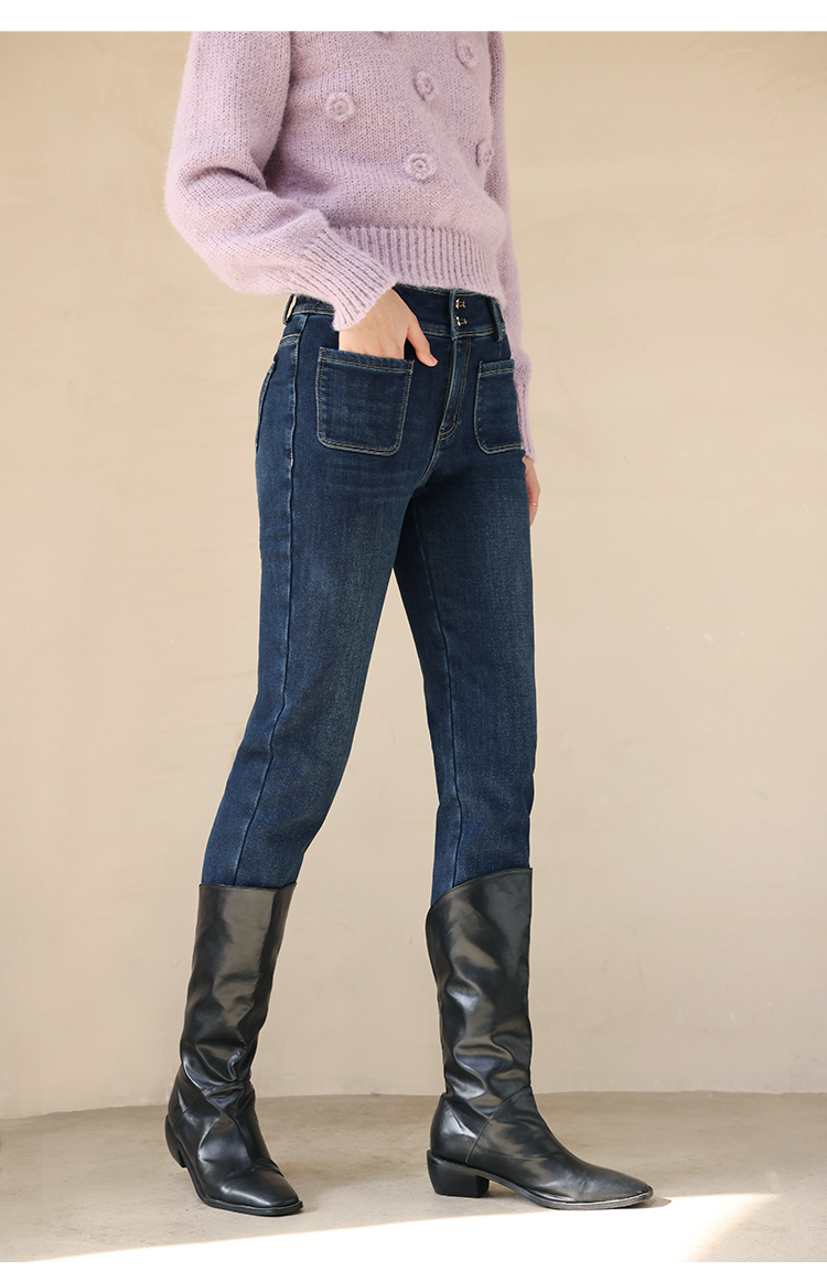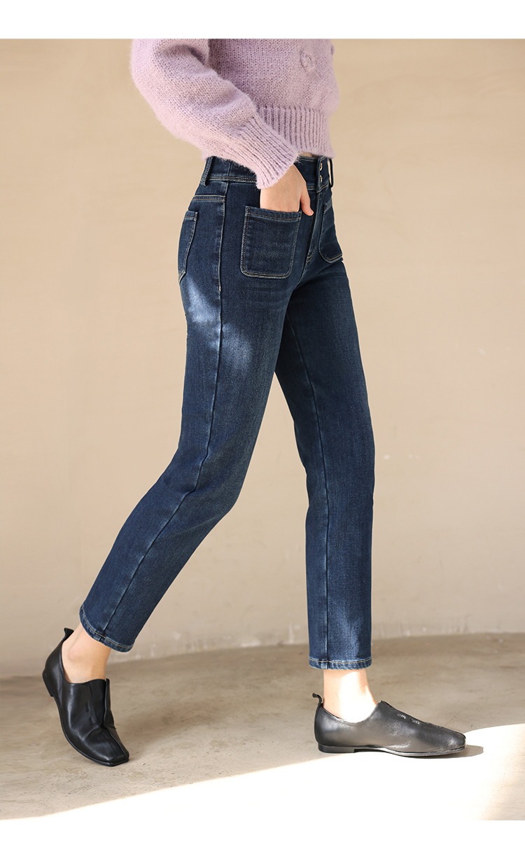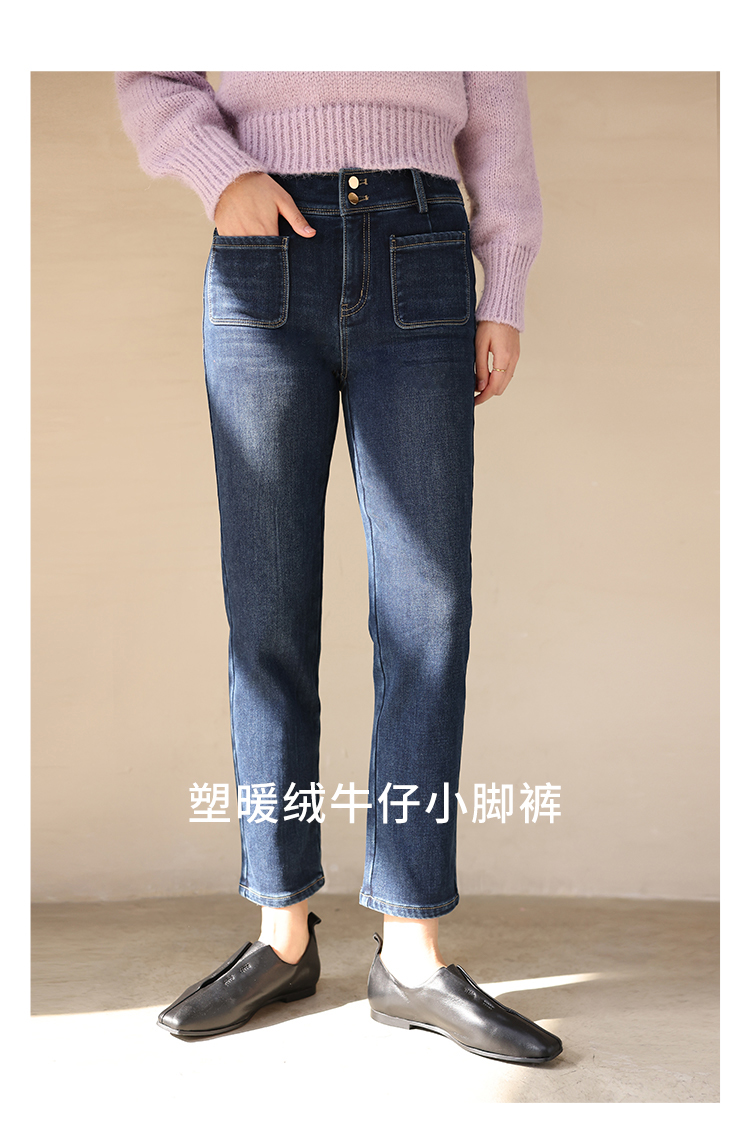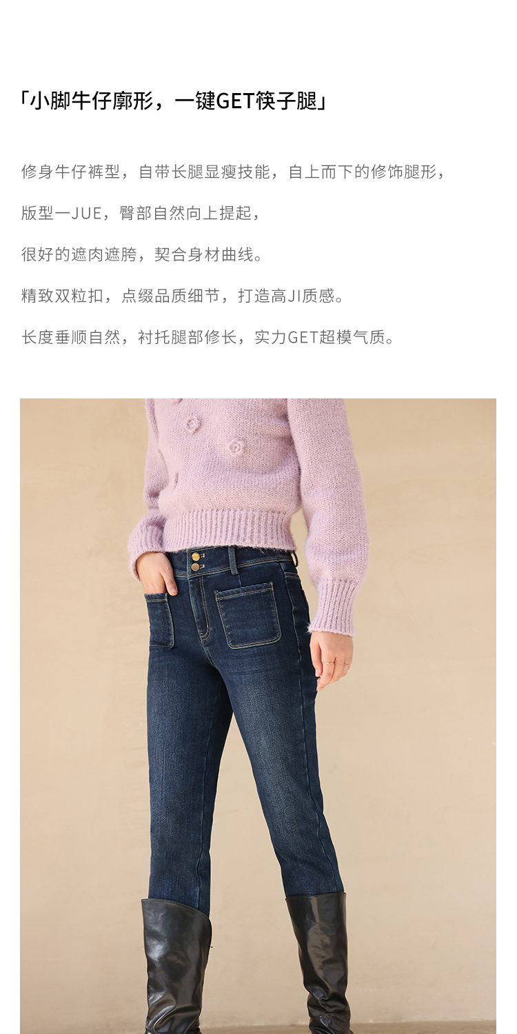 HeyDress加绒牛仔裤女冬季高腰修身显瘦加厚小脚裤塑形保暖裤子