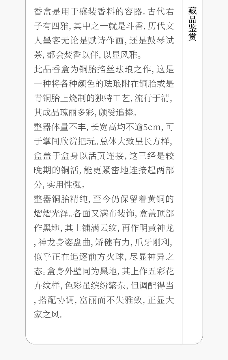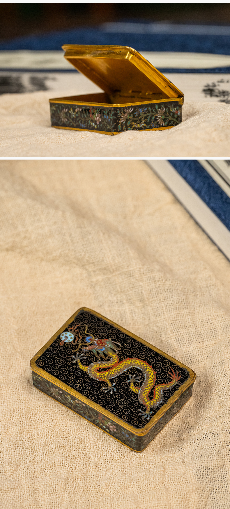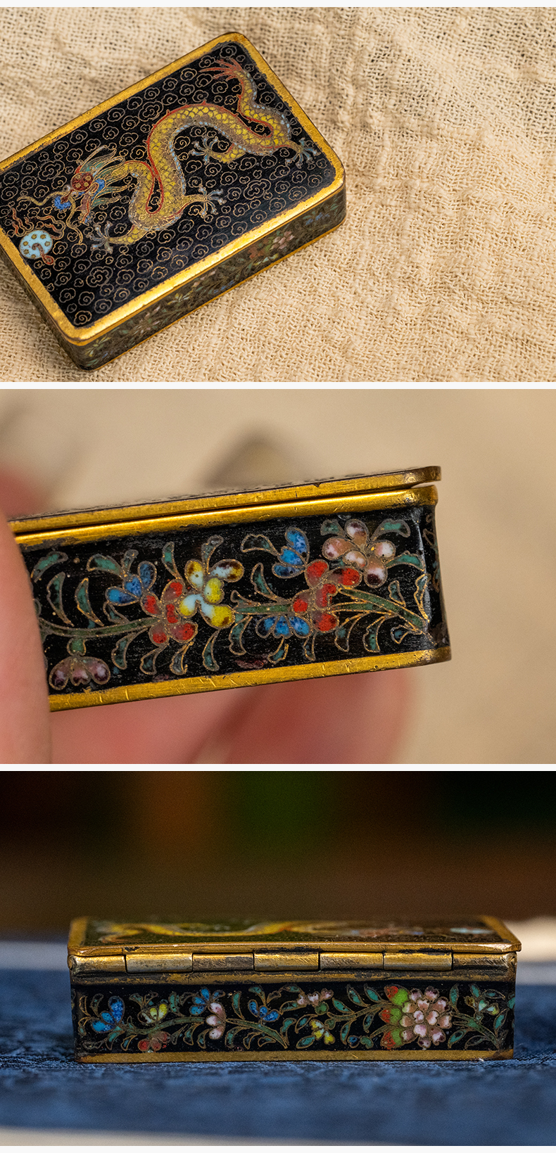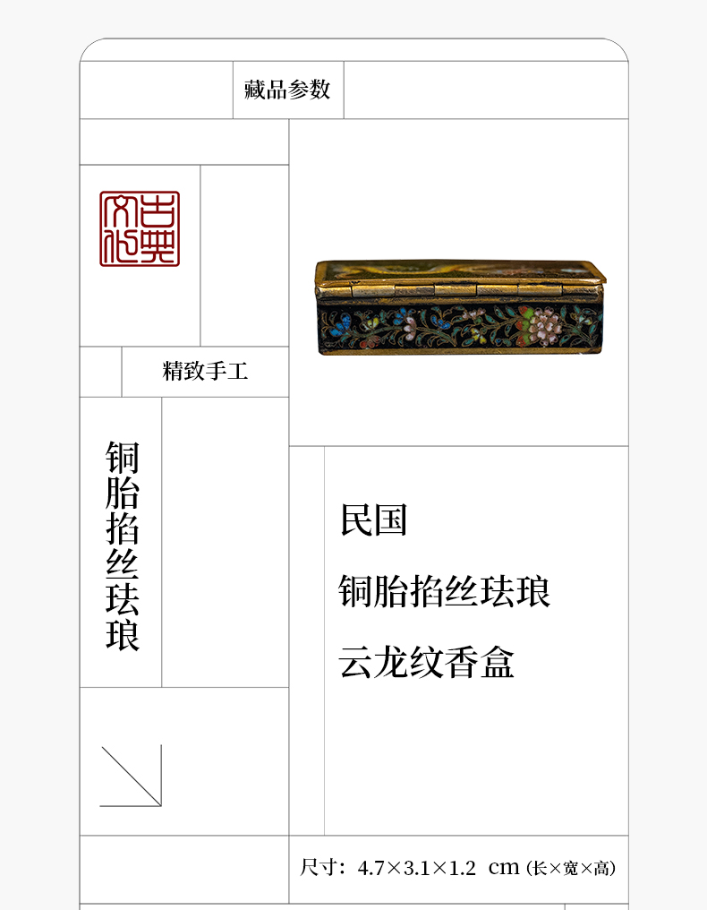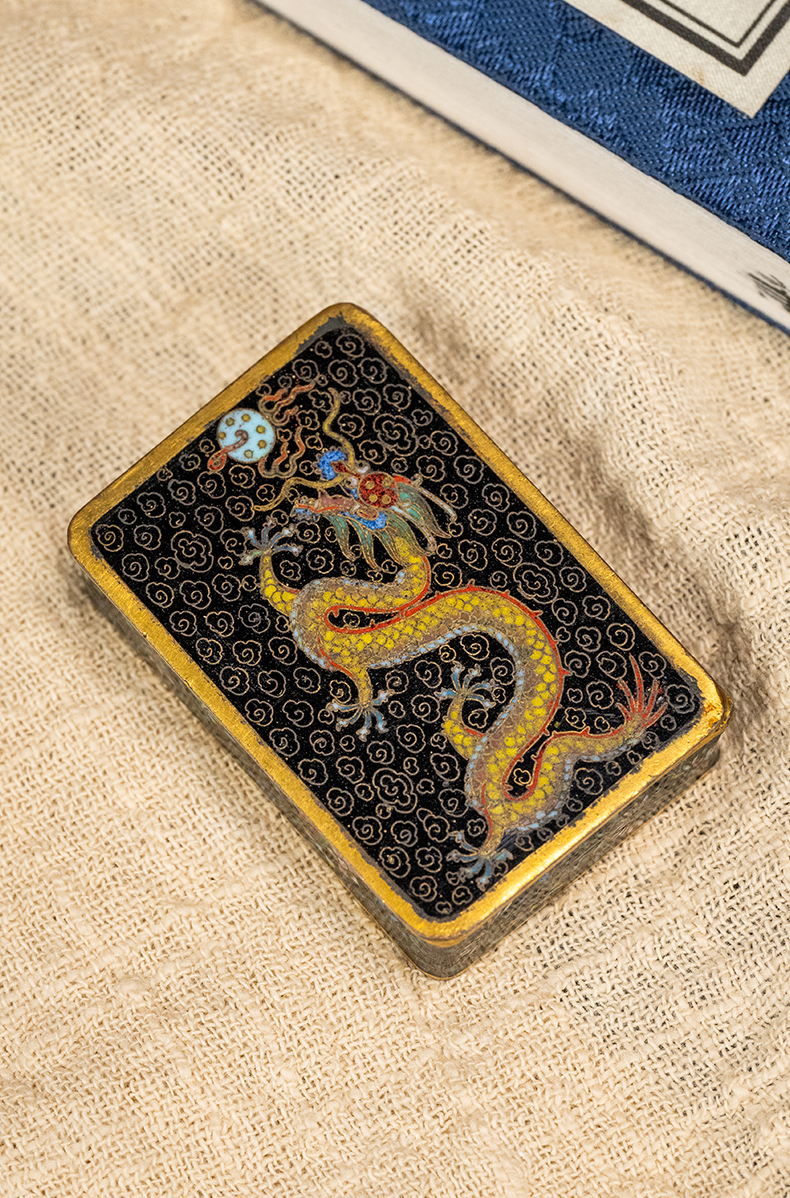 民国 铜胎掐丝珐琅云龙纹香盒