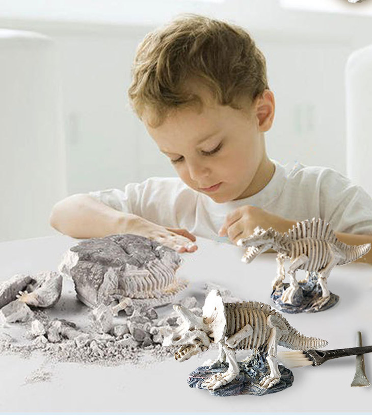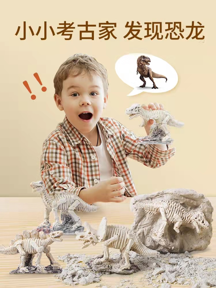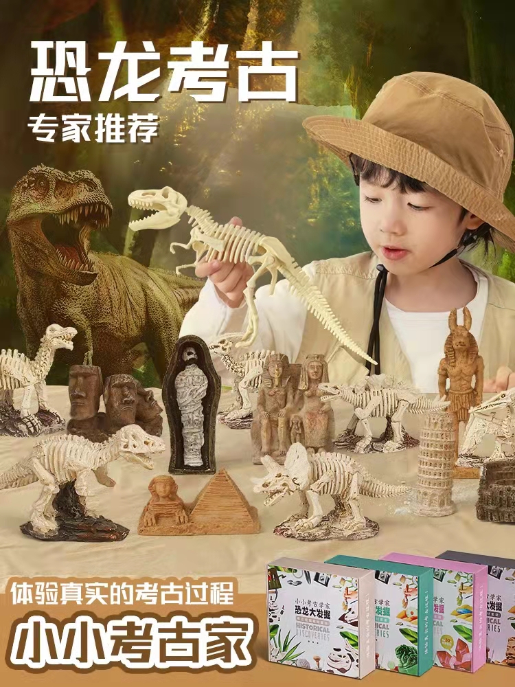 考古玩具通过让孩子自己动手挖掘“宝物”体验真实的考古过程,并收藏陈列,从而获得自豪感,并进一步激发他们学习历史知识无自然知识的热情。