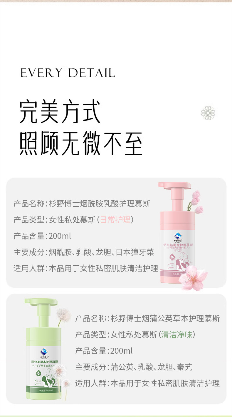 【渗透内心深处,再次拥抱"少女年华”】杉野医生私处护理液 女性私部 洁阴温和留香私处洗护 粉嫩慕斯-QQ
