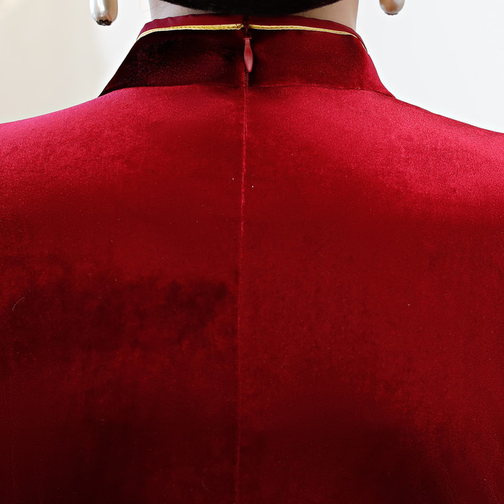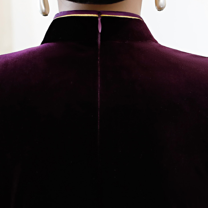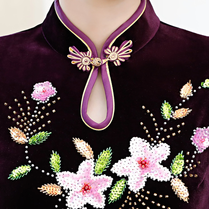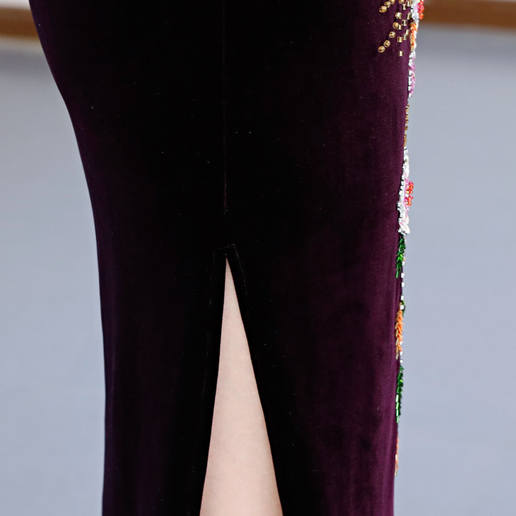 上海旗袍厂ZAYS新品手工旗袍弹力丝绒长款钉珠旗袍时尚亮片钉珠旗袍