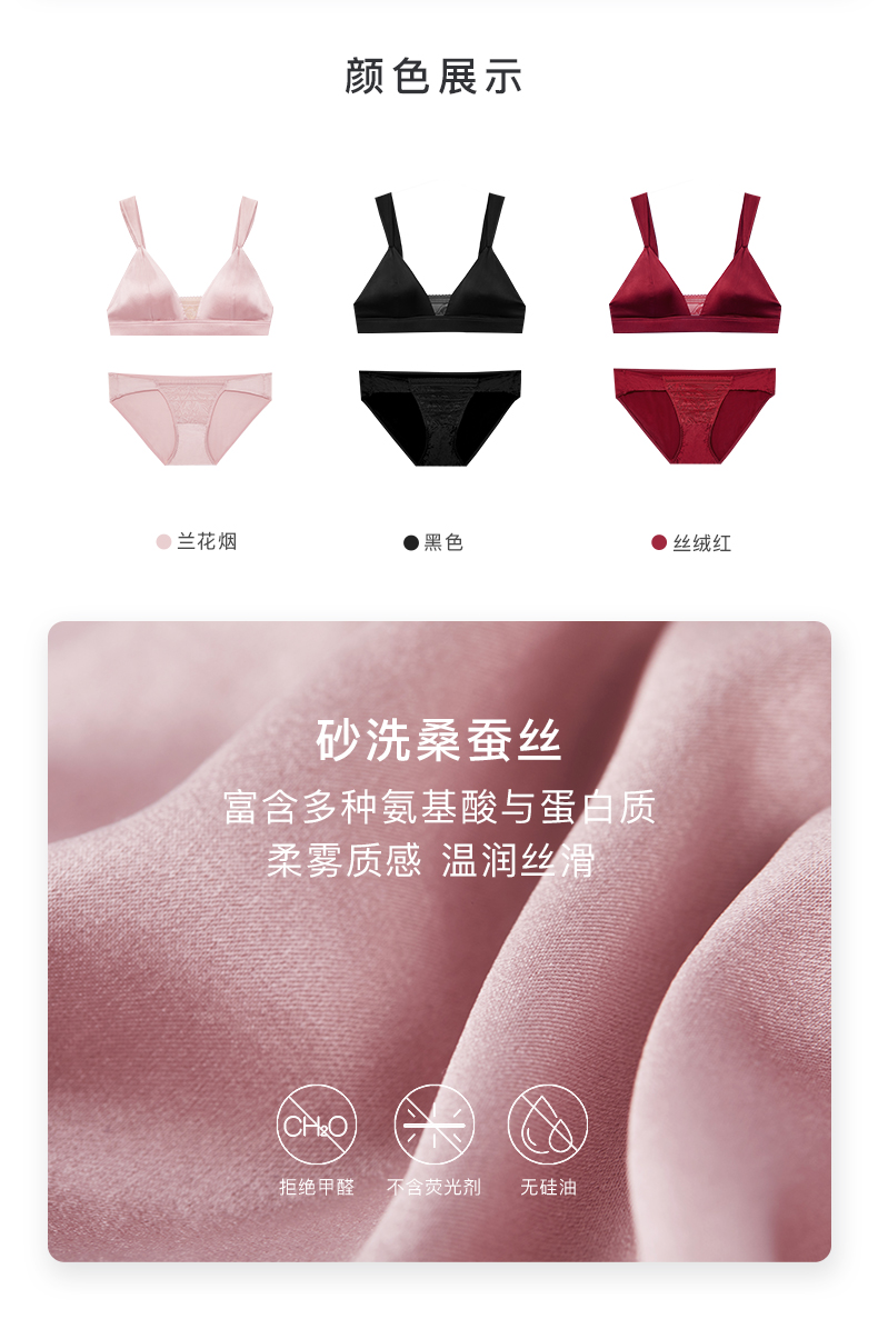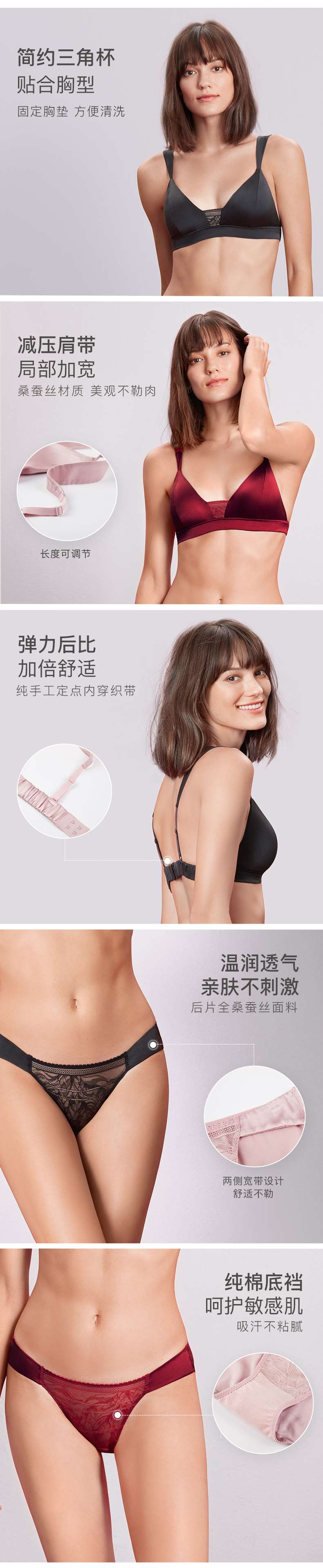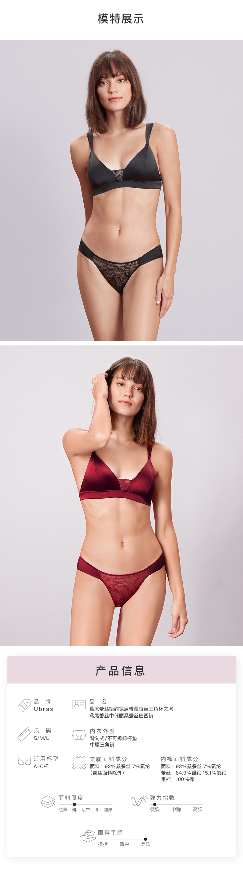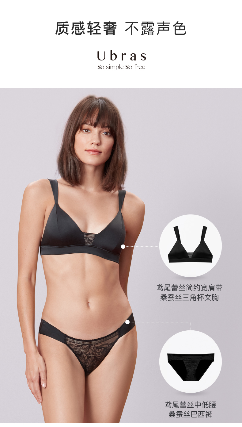 Ubras鸢尾蕾丝简约宽肩带桑蚕丝三角杯文胸中低腰巴西裤文胸套装