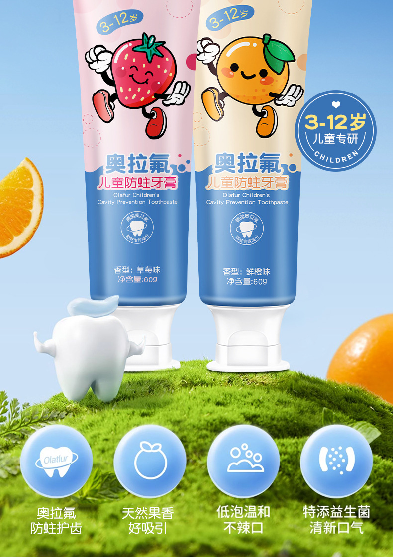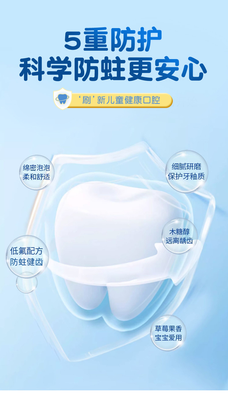【无辛辣感❗️专用护齿】3-12岁防蛀牙儿童牙膏含氟龋齿宝宝婴儿换牙期专用不吞咽。xb