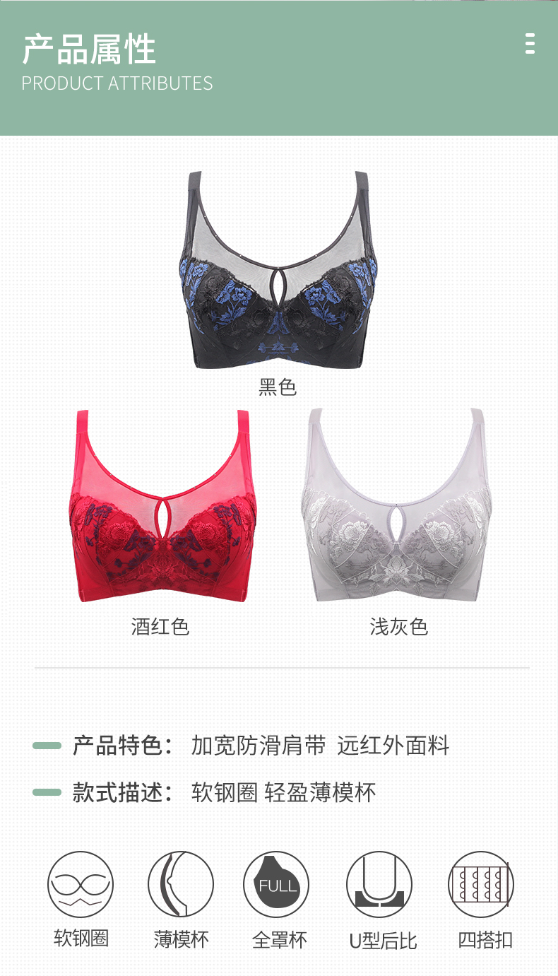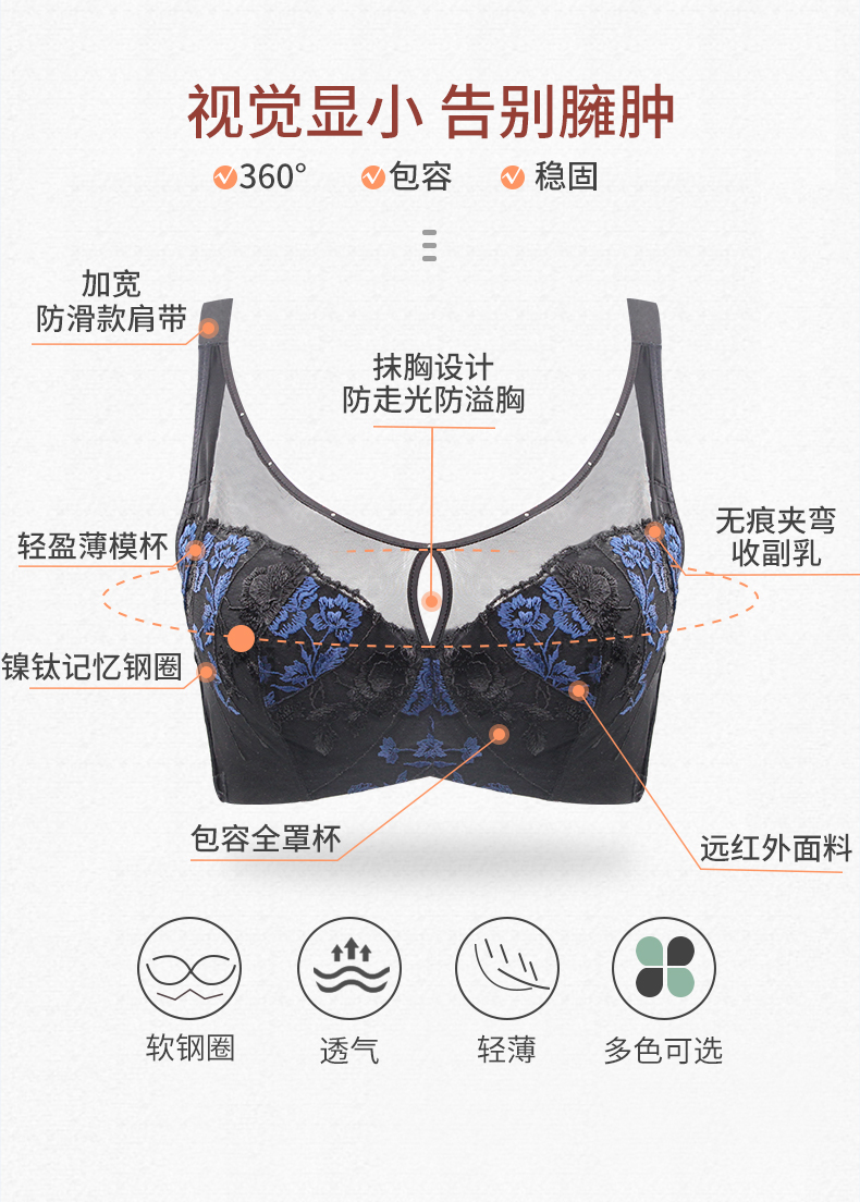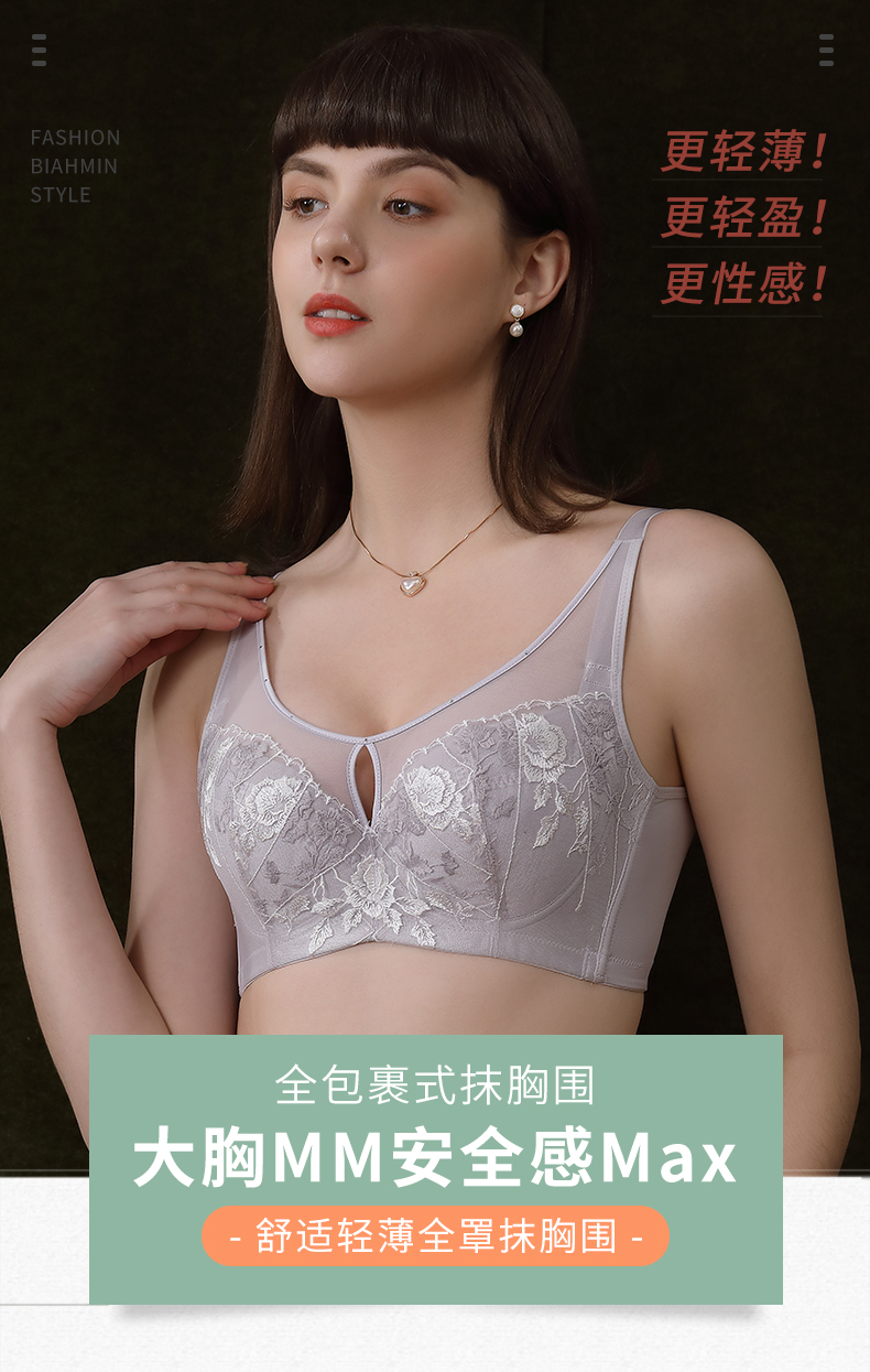 贝佳人BW92814丰满显瘦软钢圈托胸聚拢抹胸包容全罩薄调整型文胸