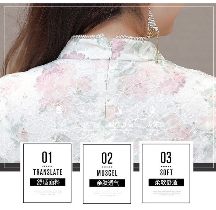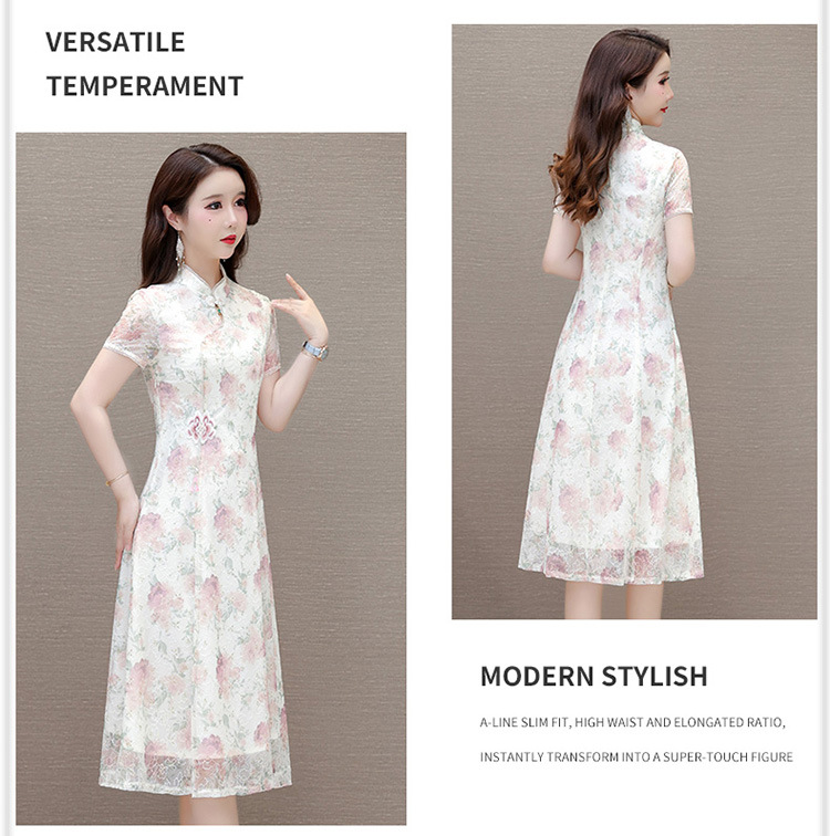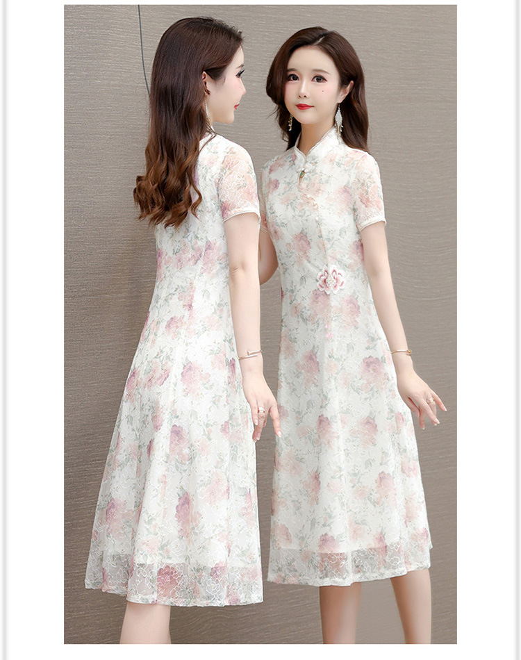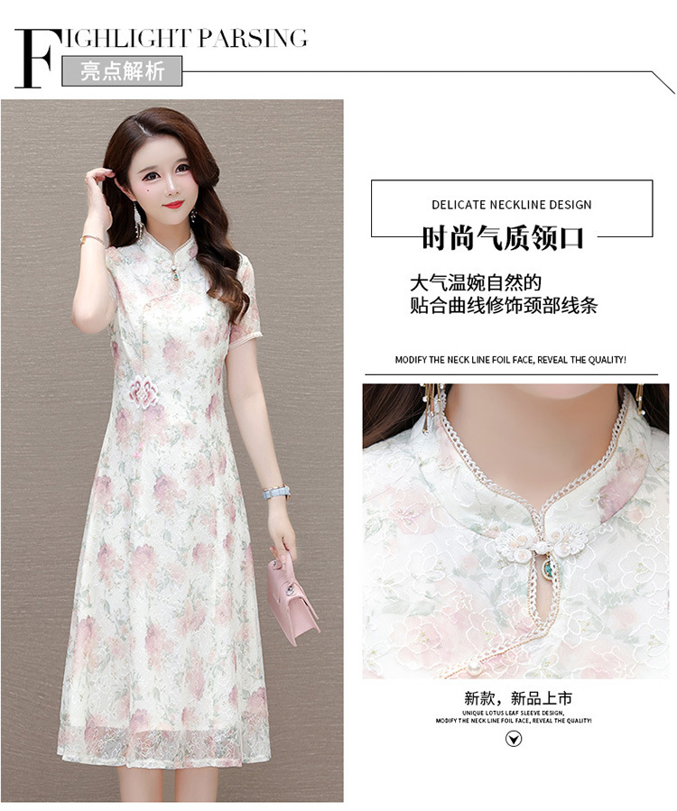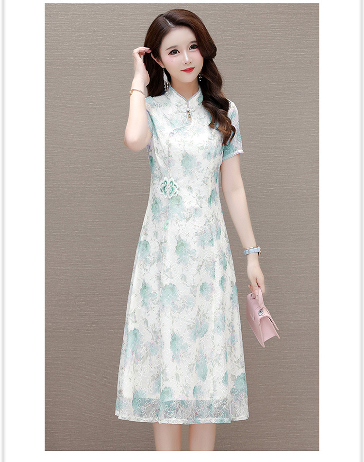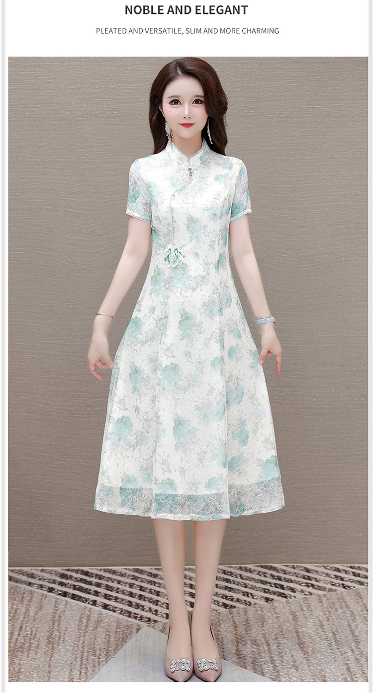 时尚印花气质优雅,旗袍连衣裙中长款A字裙QYM- LRX-MJE8833-Y