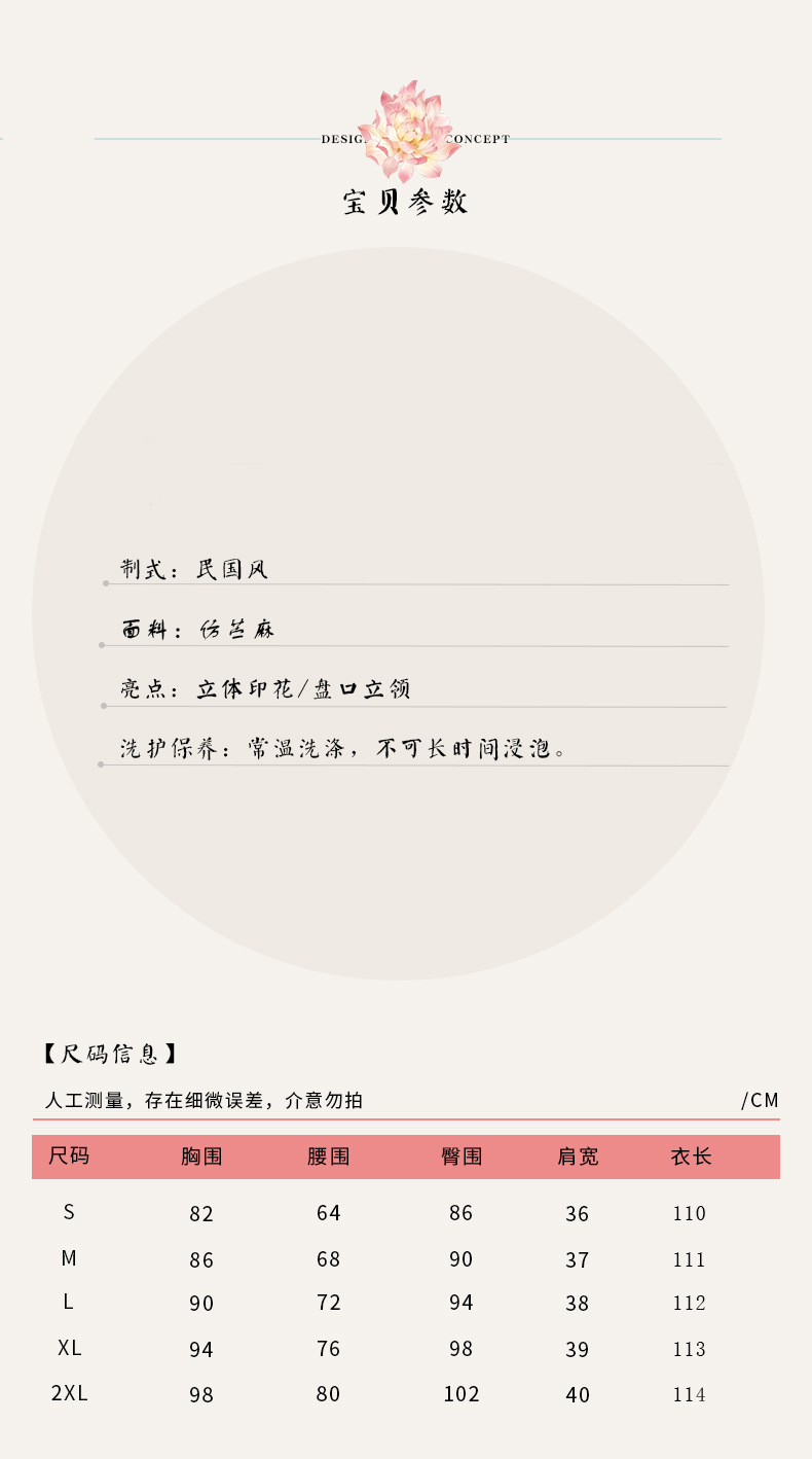 仿苎麻中长款双层改良少女旗袍连衣裙SJT-365