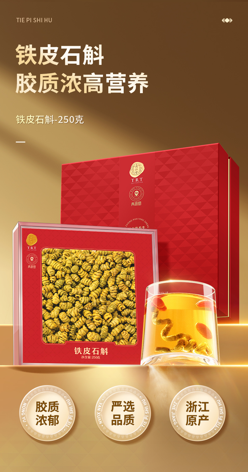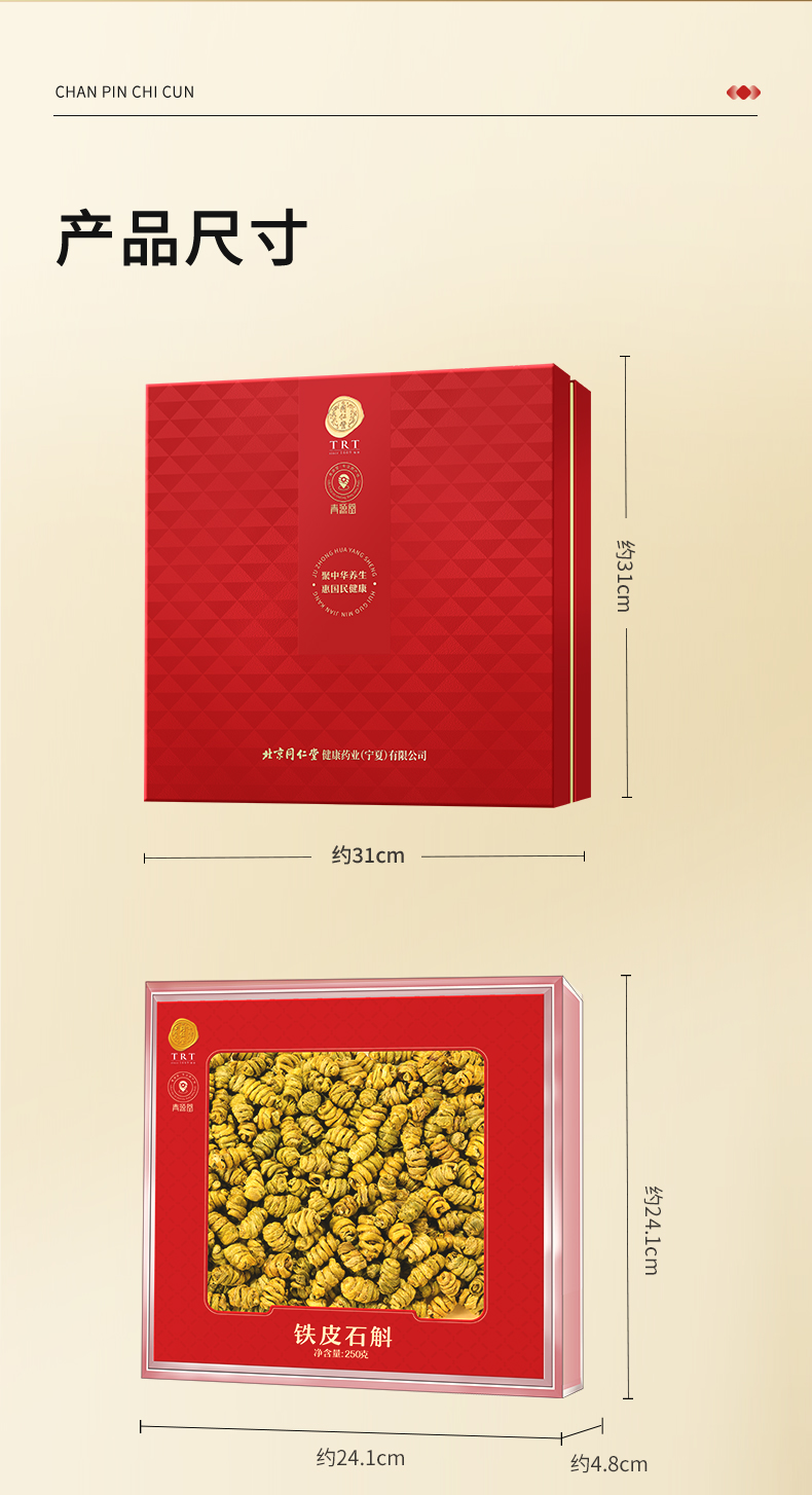 【正宗同仁堂品牌】北京同仁堂 青源堂 铁皮石斛250克摆盘礼盒 浙江乐清 胶质饱满 花前采摘SY
