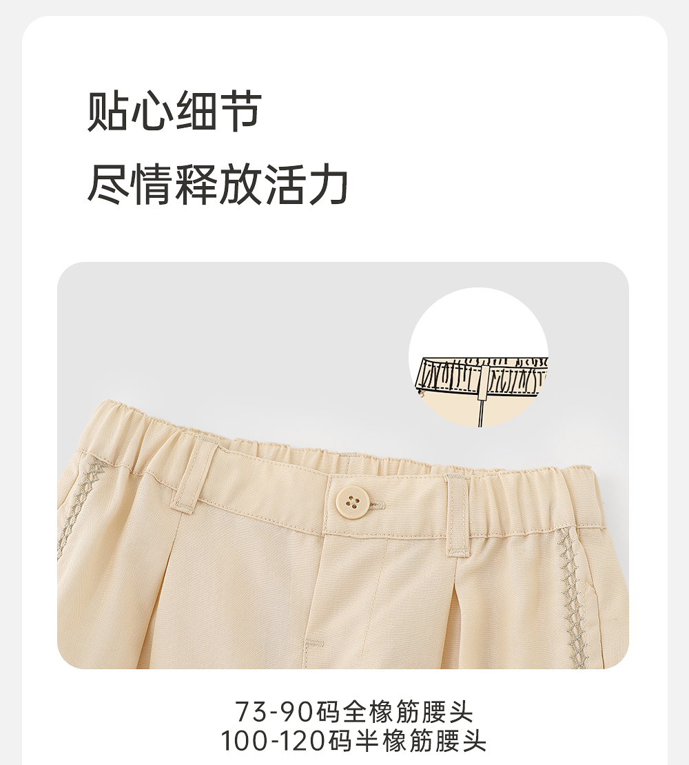 【高定系列】英氏儿童裤子夏季莱塞尔透气男童百搭长裤亚麻休闲裤