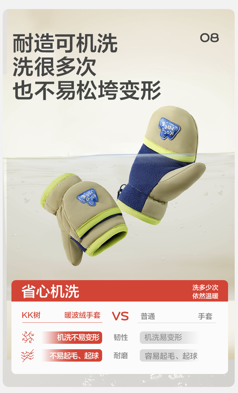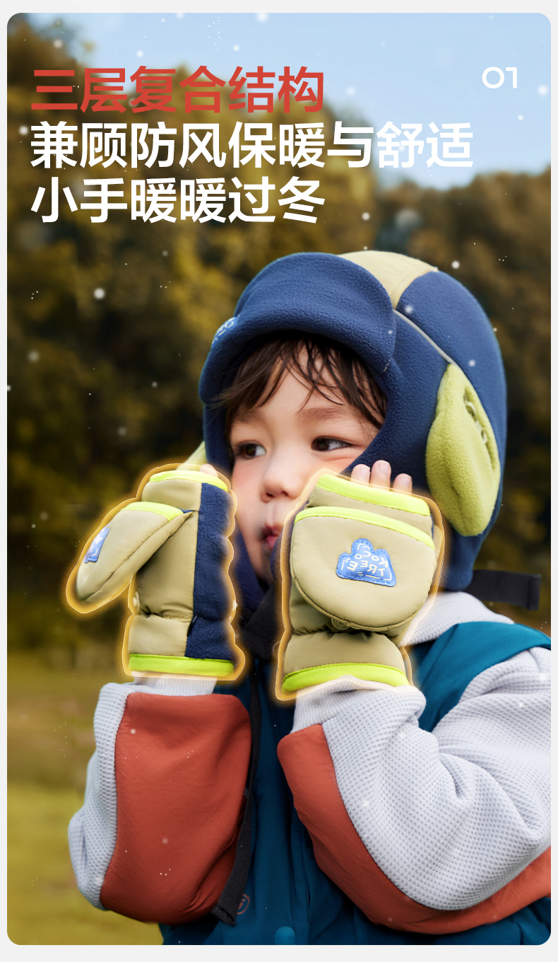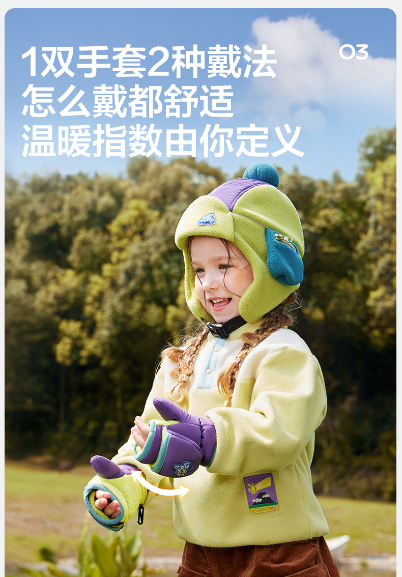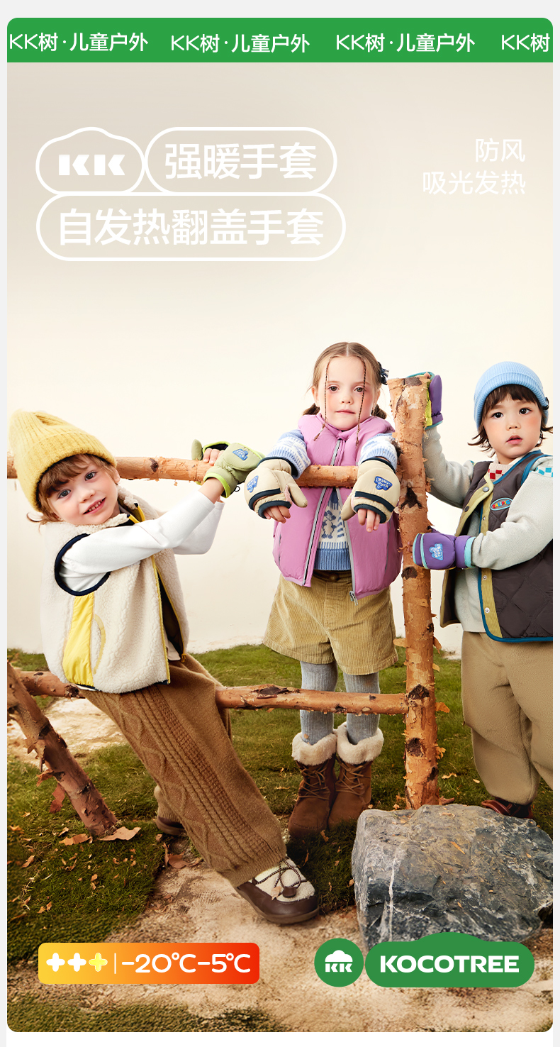 KK树儿童手套秋冬季男童女孩宝宝翻盖全指小学生专用加厚冬天保暖小暖阳翻盖手套