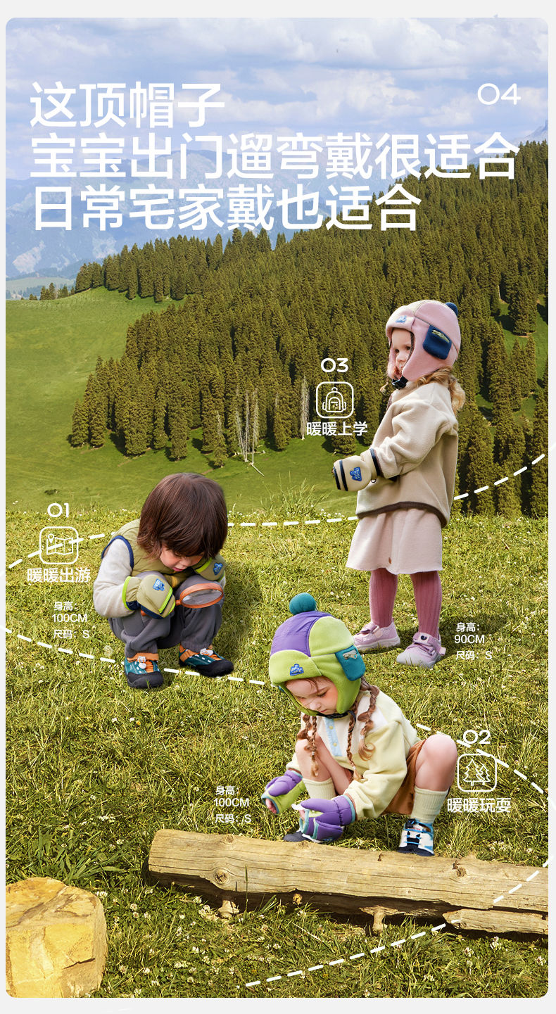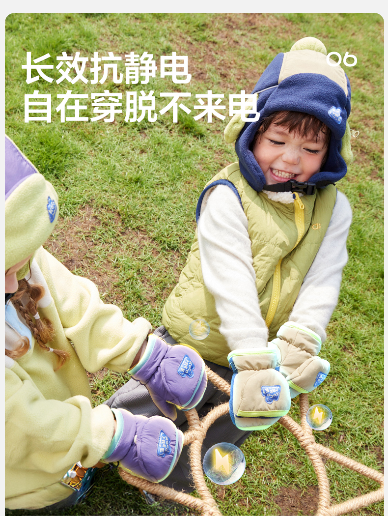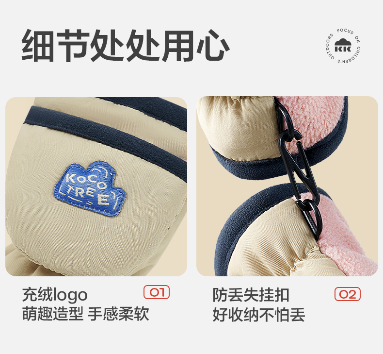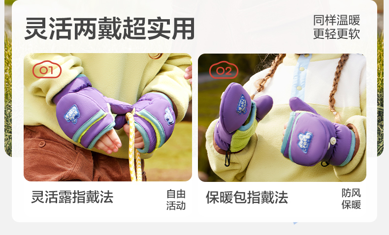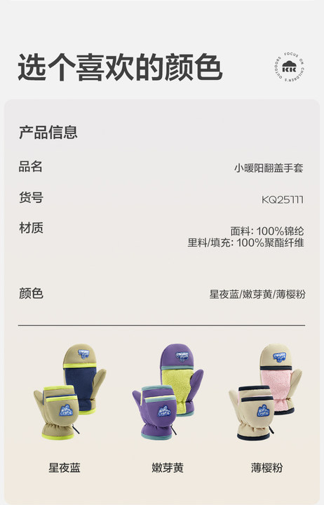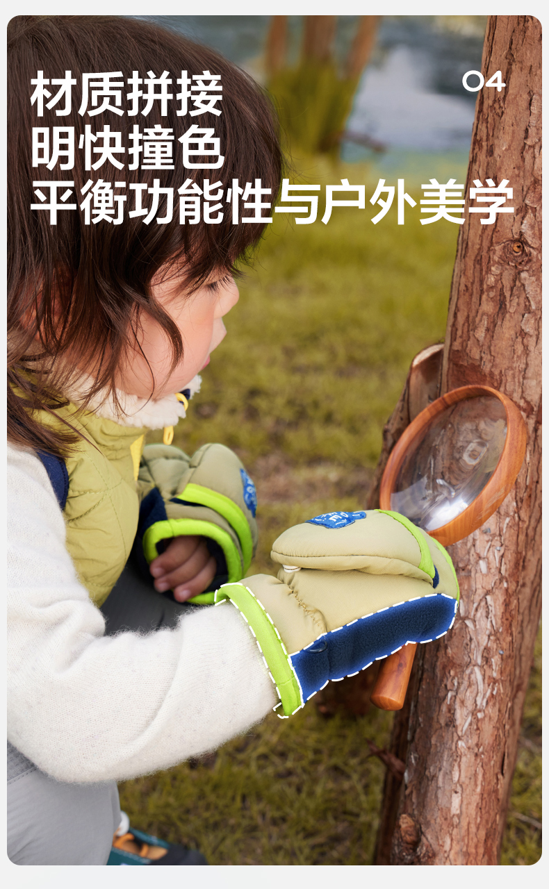 KK树儿童手套秋冬季男童女孩宝宝翻盖全指小学生专用加厚冬天保暖小暖阳翻盖手套