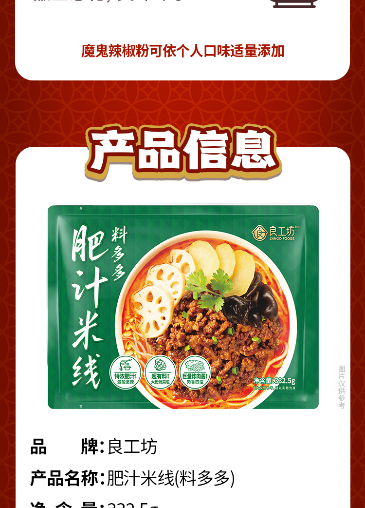 良工坊肥汁米线(料多多)332.5g 方便速食酸辣粉