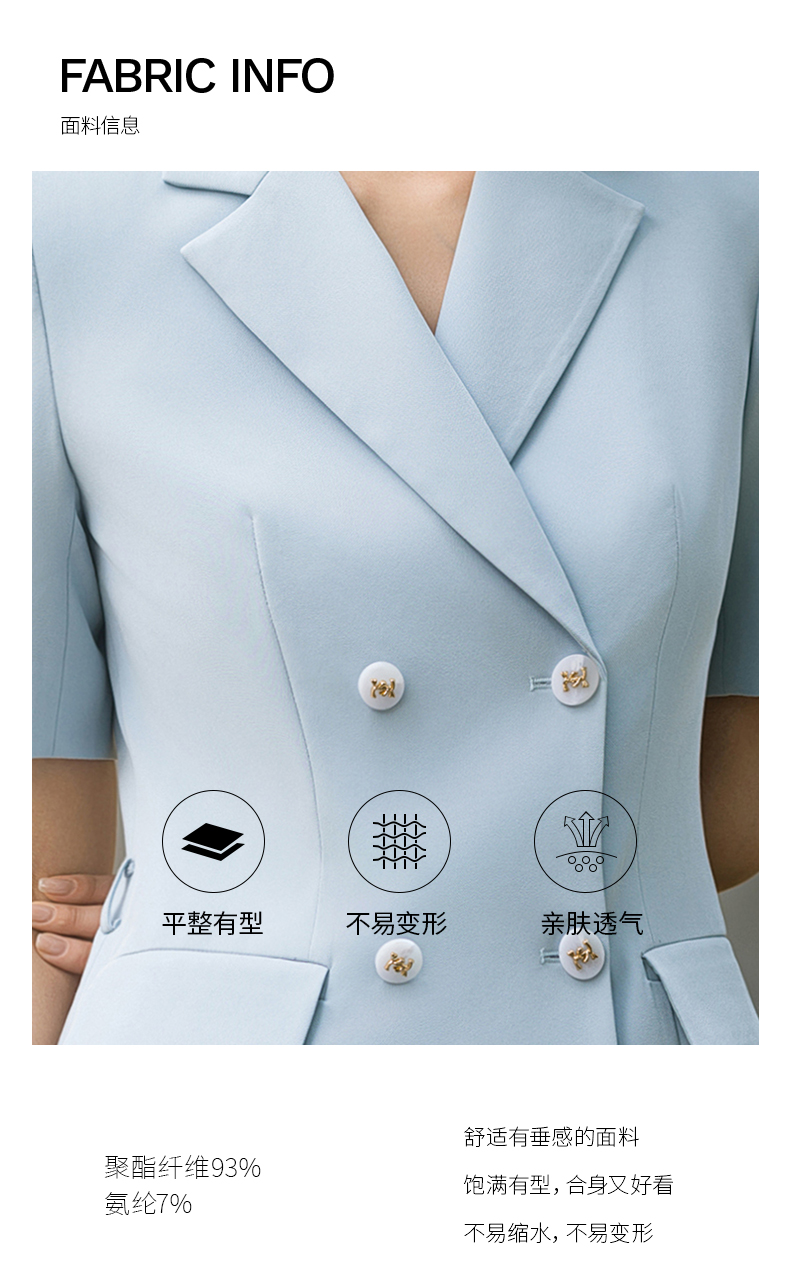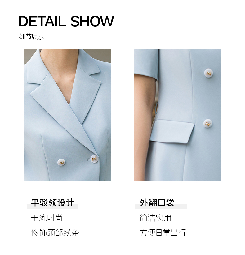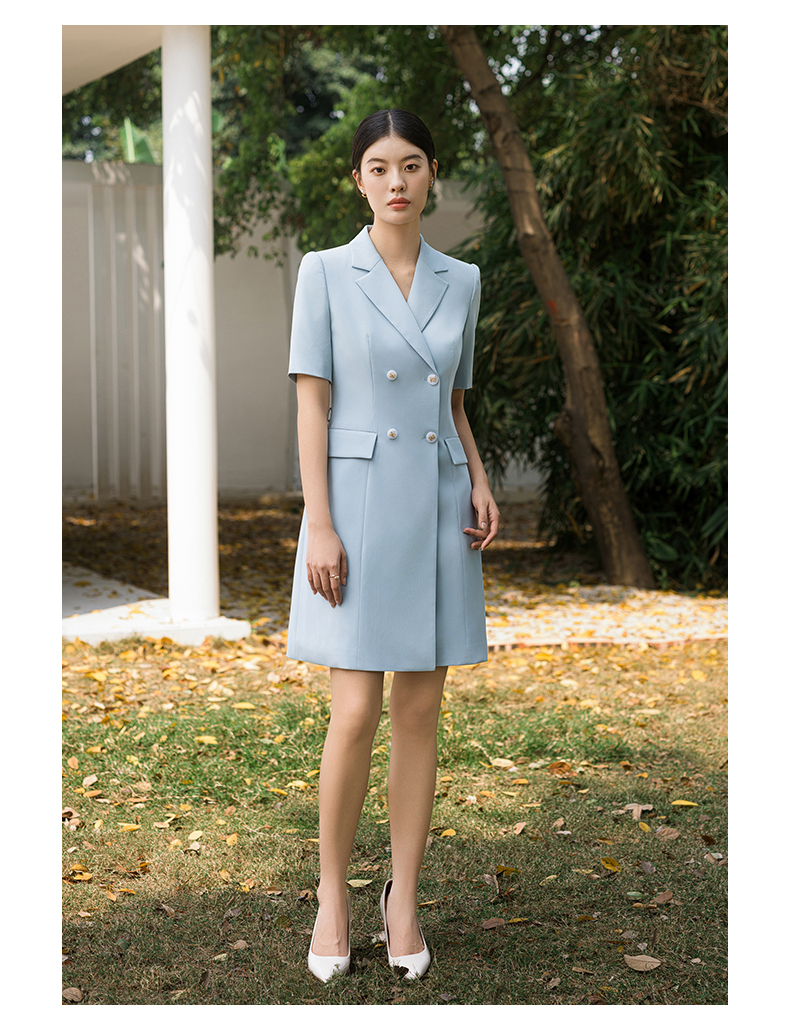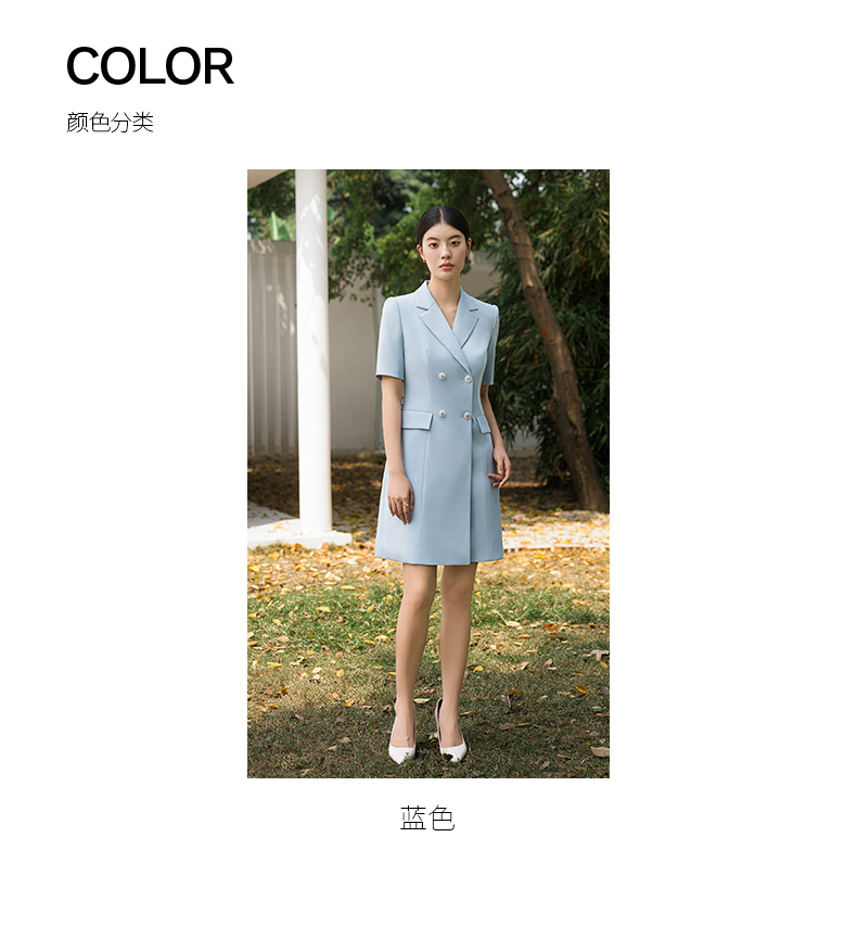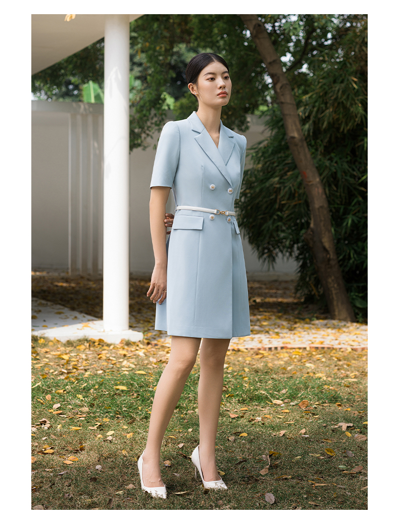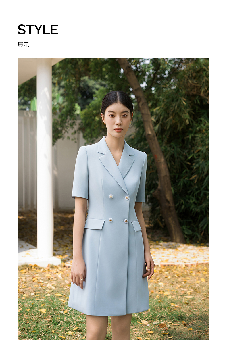 IWY/蓝色西装连衣裙短袖高级优雅名媛商务通勤医美职业ol工装裙子Q14236