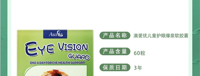 【保税】澳洲 澳爱优(Ausiki)儿童护眼爆浆软胶囊 60粒