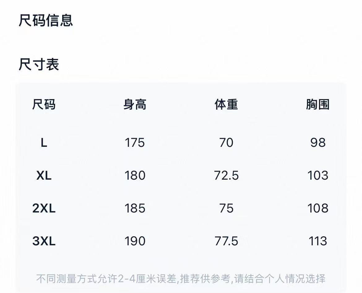 规格:L--XL--2XL--3XL