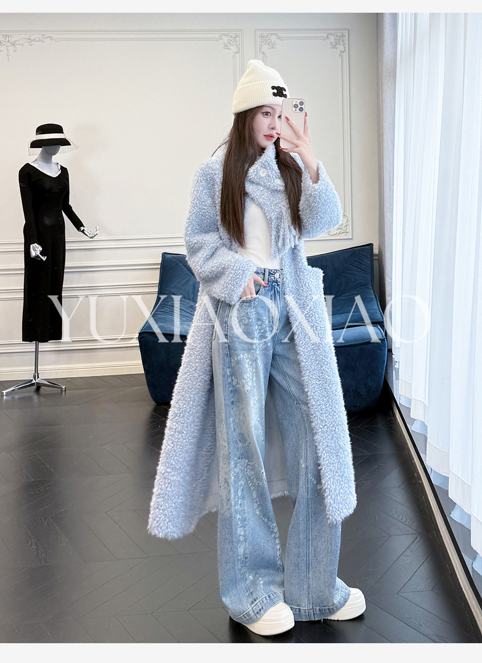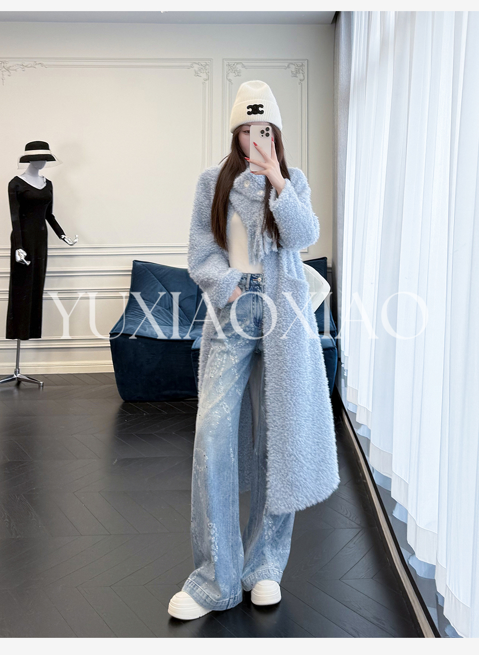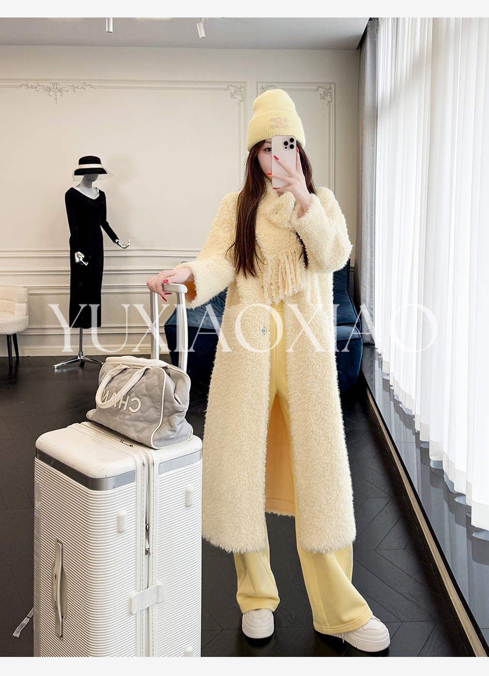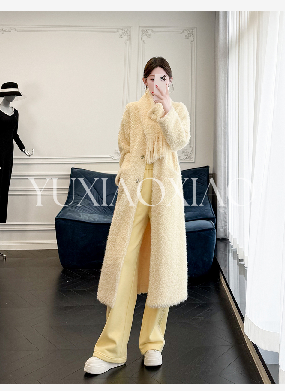 余潇潇【悉尼晨光】松弛慵懒宽松可拆卸围巾单排扣落肩长款外套