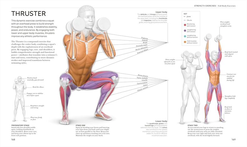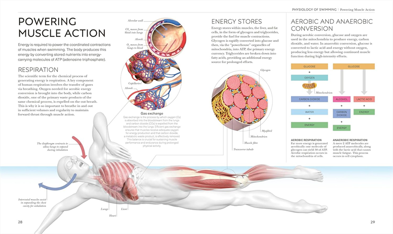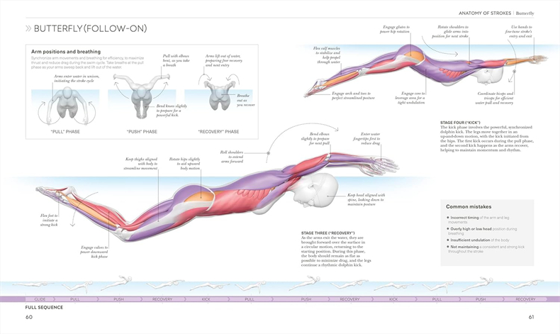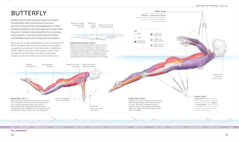 Each swim stroke is anatomized so you can analyze and adapt your stroke to swim smarter.