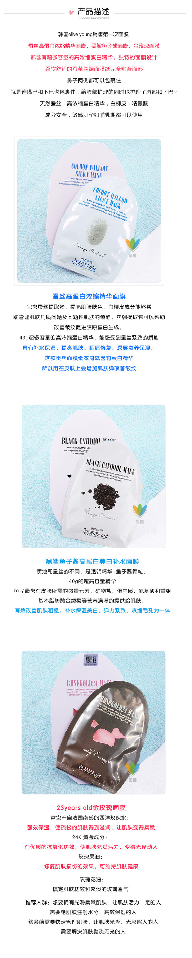 韩国23years old美白补水面膜 玫瑰 鱼子酱 蚕丝面膜 (5片/装)