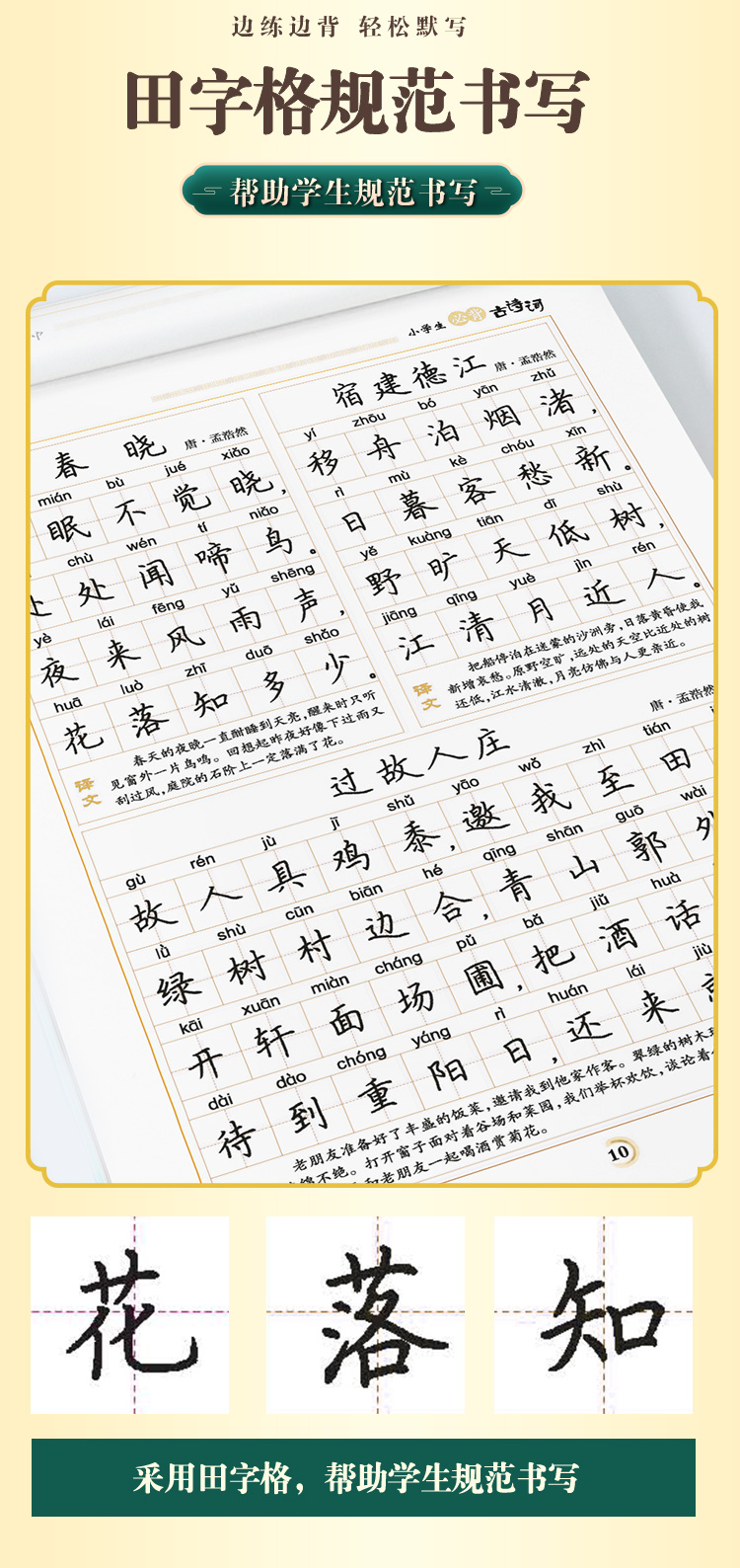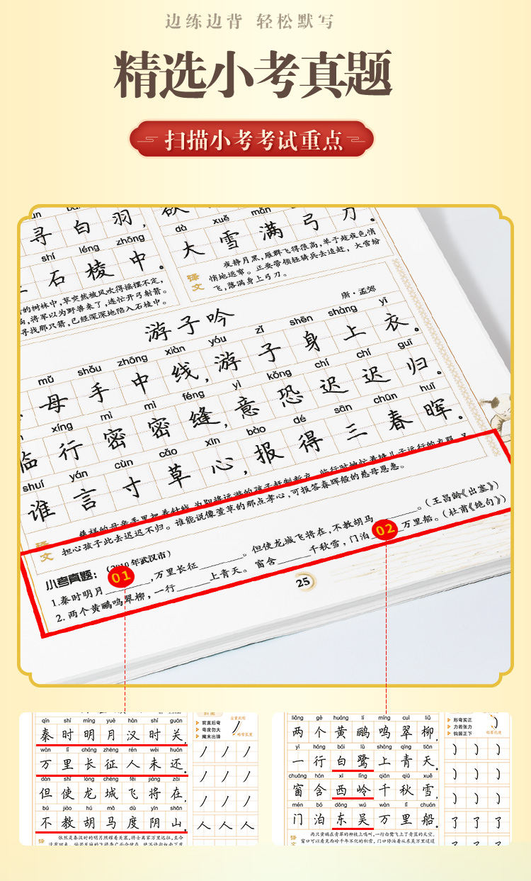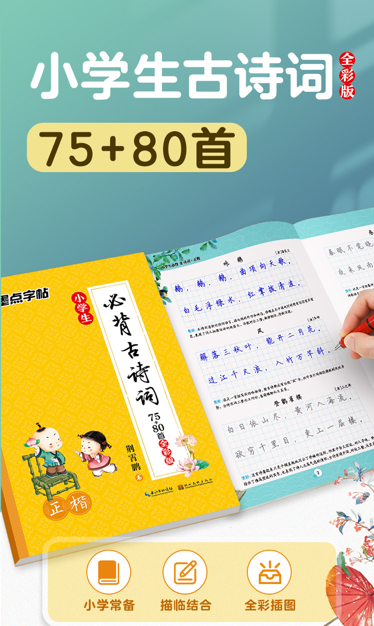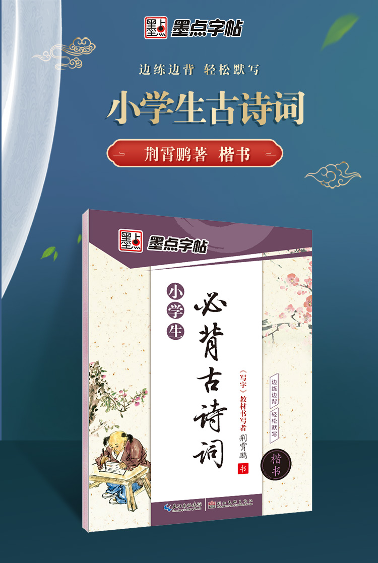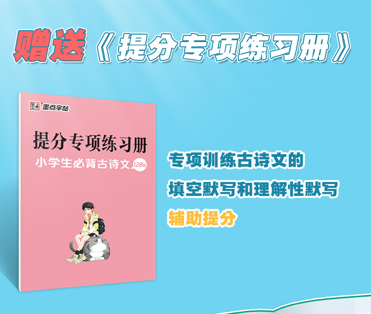 墨点字帖【小学生古诗文系列】楷书小学儿童语文课本75首唐诗宋词硬笔书法练字凹槽练字帖小学生钢笔练字古诗字帖