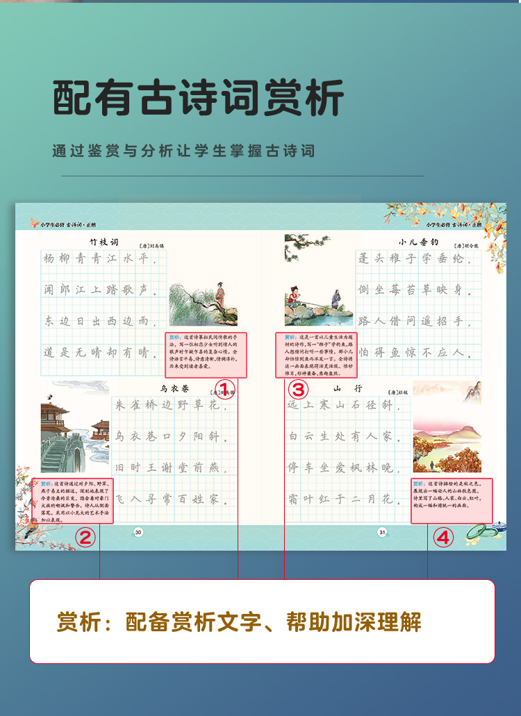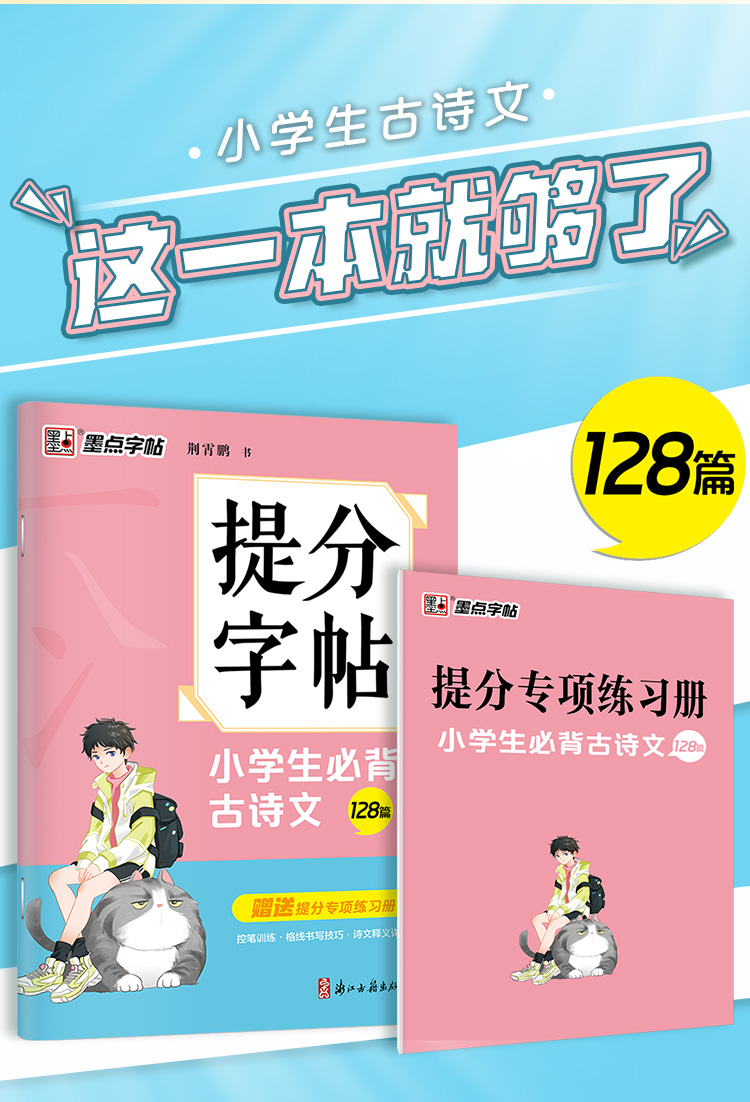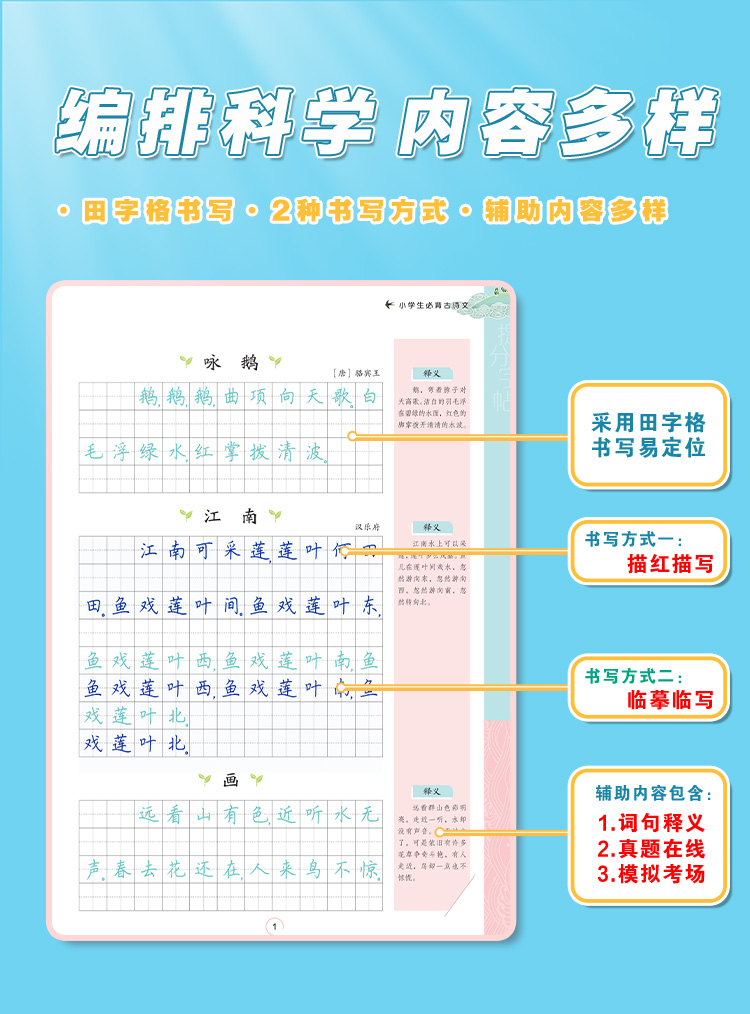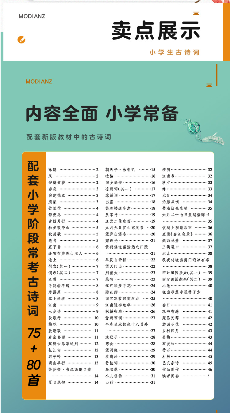 墨点字帖【小学生古诗文系列】楷书小学儿童语文课本75首唐诗宋词硬笔书法练字凹槽练字帖小学生钢笔练字古诗字帖